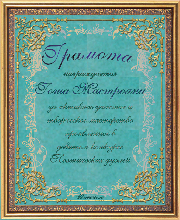 по итогам общего голосования ДЕВЯТОГО конкурса поэтических дуэлей (в паре с Ефимом Морозовым)