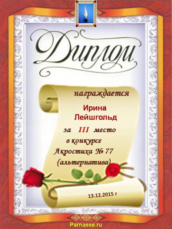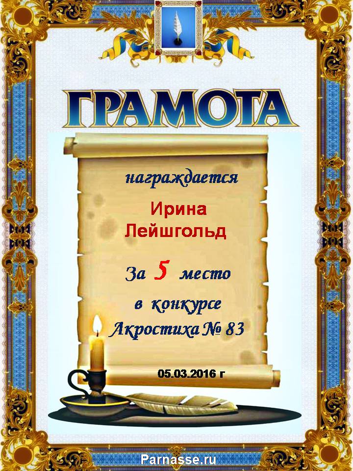Диплом победителю в конкурсах Акростиха в связи с пятилетием конкурса Акростиха!