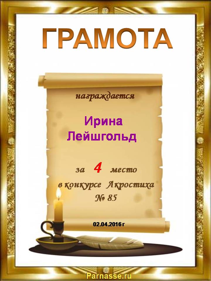 Грамота за активное комментирование в юбилейном конкурсе Акростиха № 100! Поздравляю!