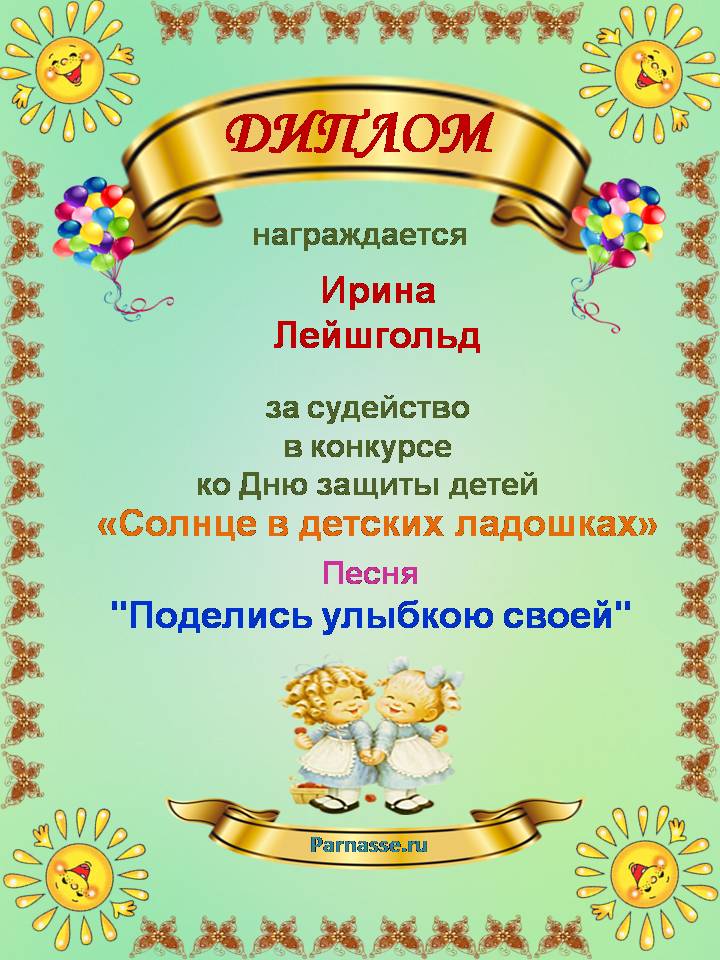 За объективное судейство музыкально-литературного конкурса "Солнце в детских ладошках". Песенная номинация "Поделись улыбкою своей". Благодарим за понимание и сверхценную поддержку!