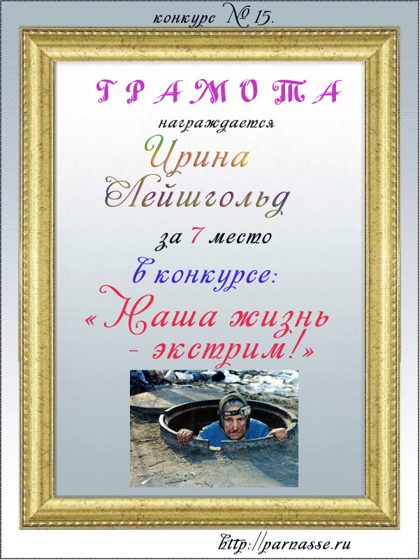Диплом за 5 место в конкурсе № 15 «Наша жизнь – экстрим!»