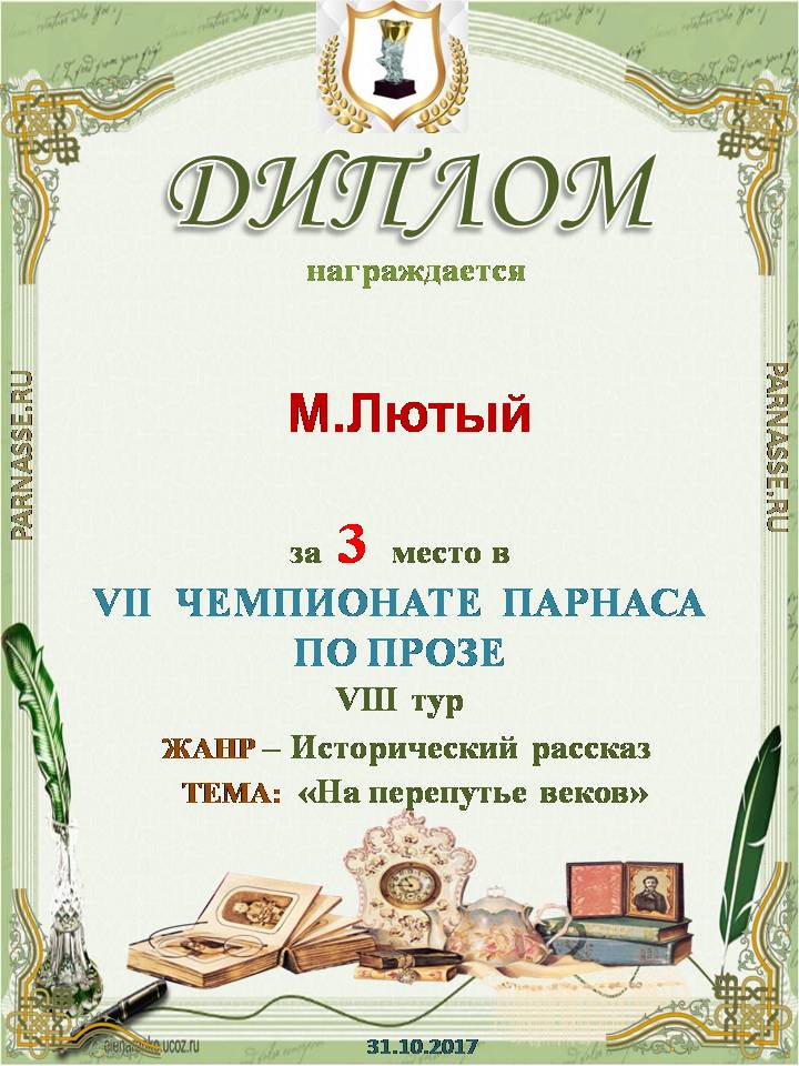 за третье место в 8 туре Седьмого Чемпионата Парнаса по прозе