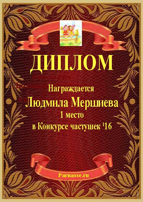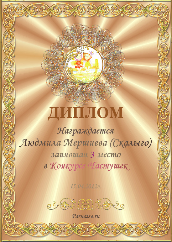 ![]() Медаль за ТРЕТЬЕ место в 4-ом конкурсе Частушек!