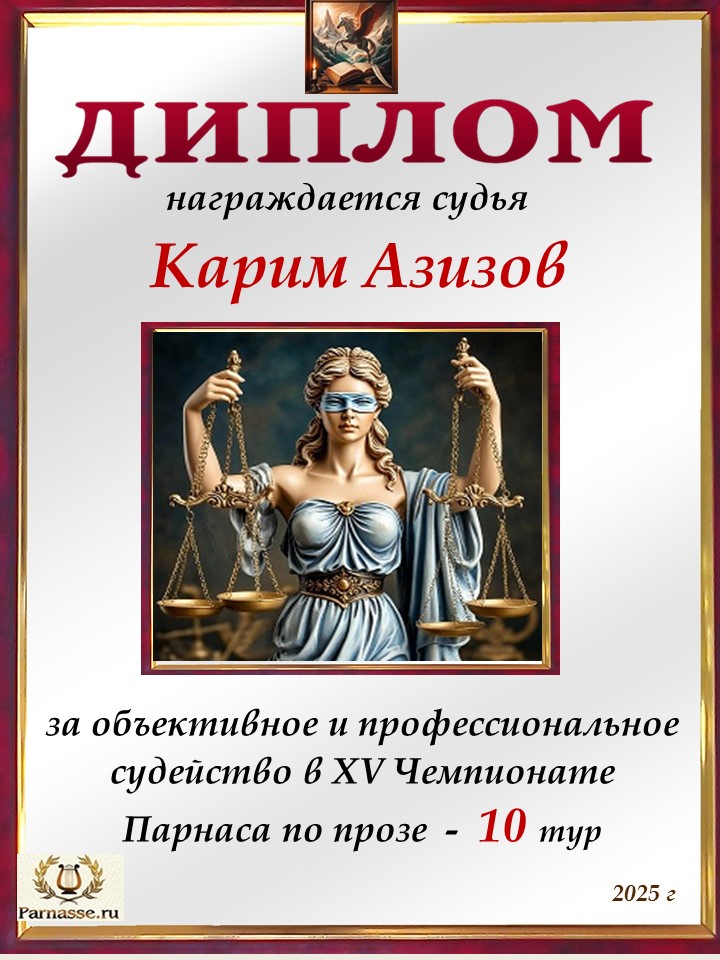 Спасибо за высокопрофессиональное и объективное судейство в 10 туре X Чемпионата Парнаса по Прозе!