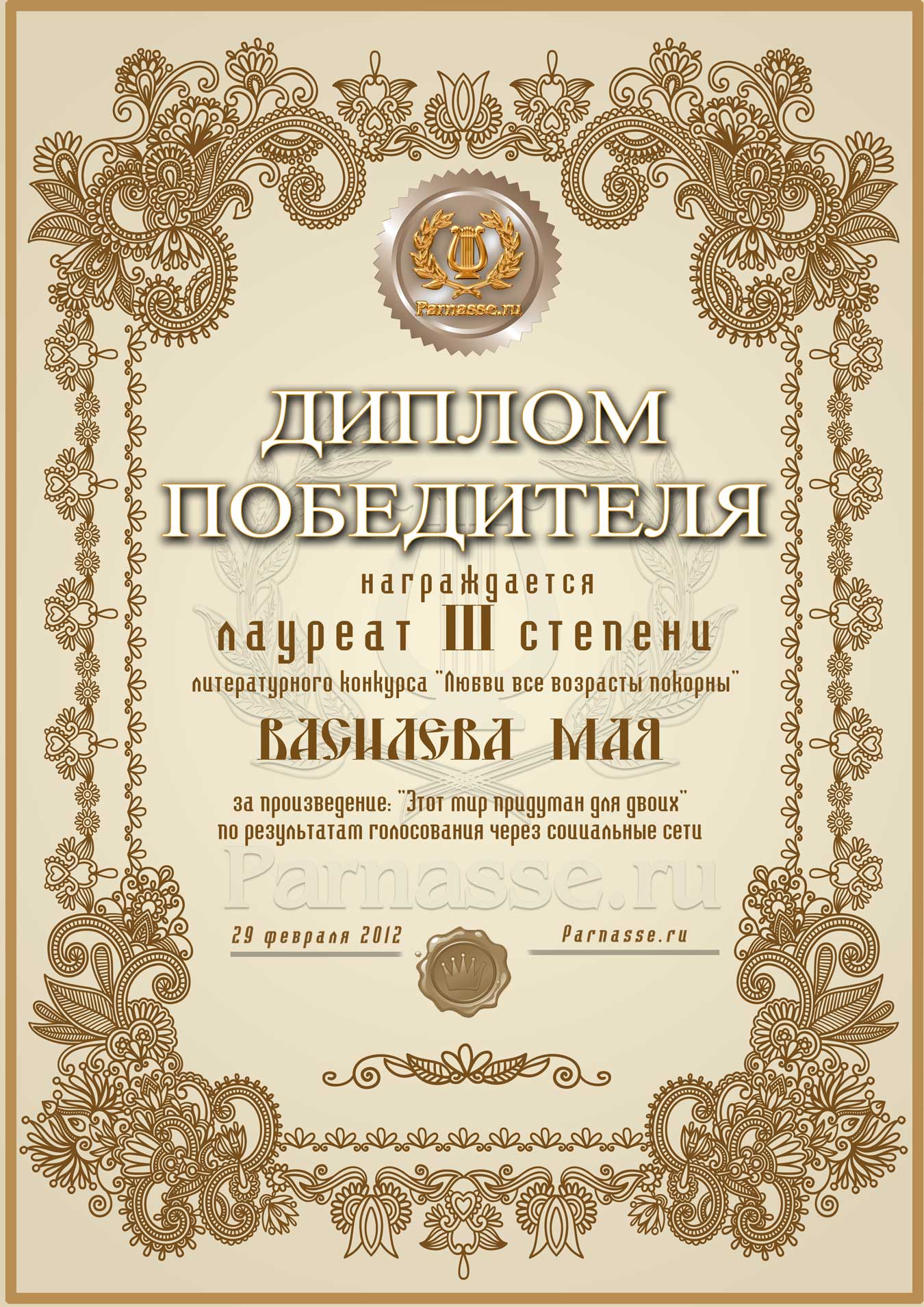 Диплом лауреата III степени лит.конкурса "Любви все возрасты покорны"