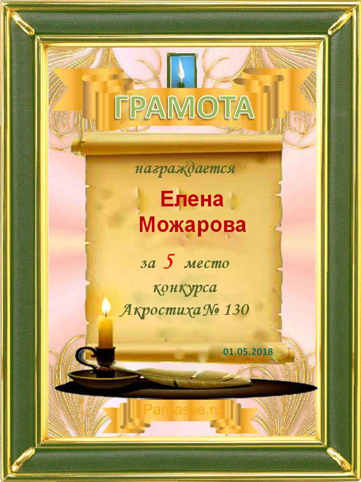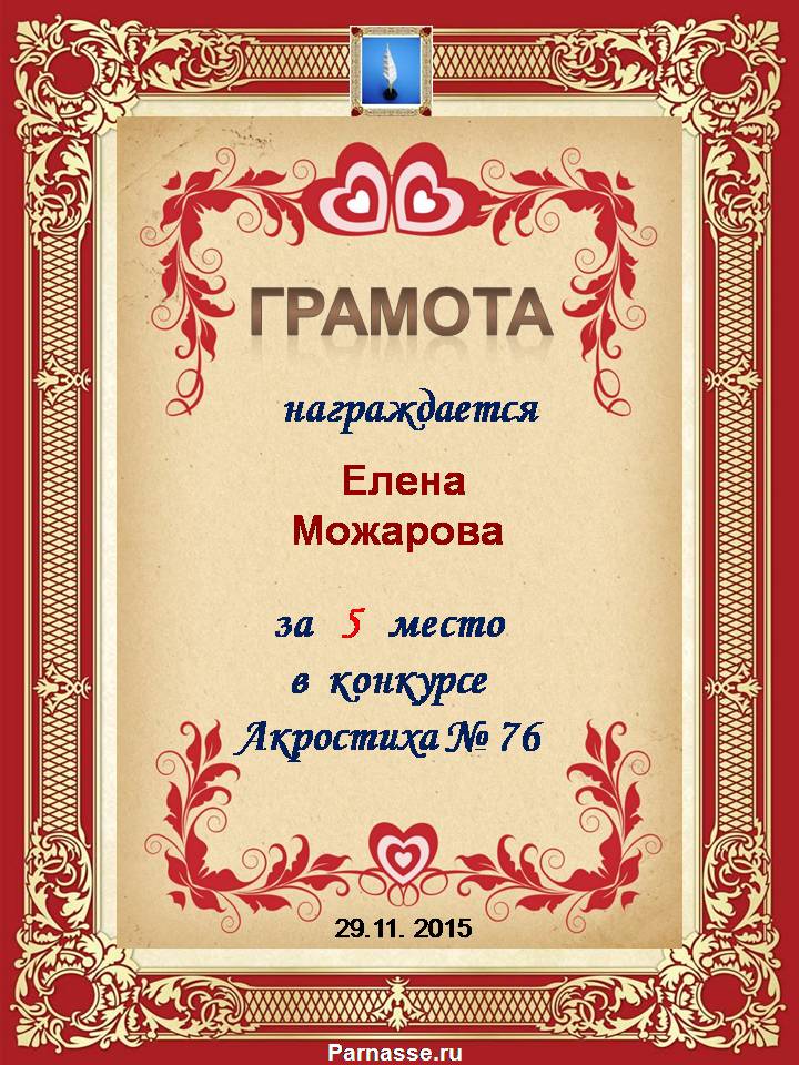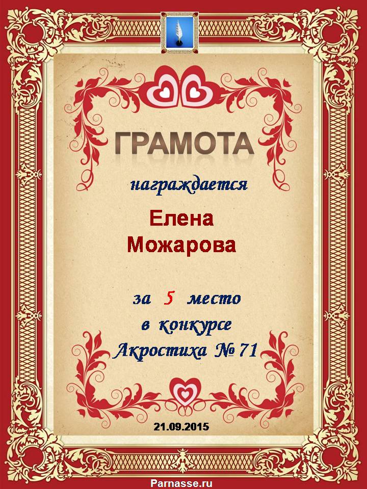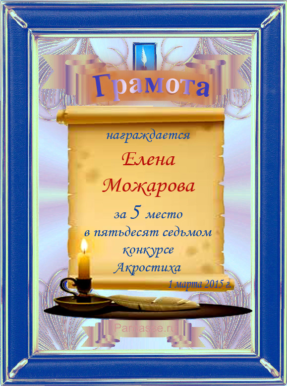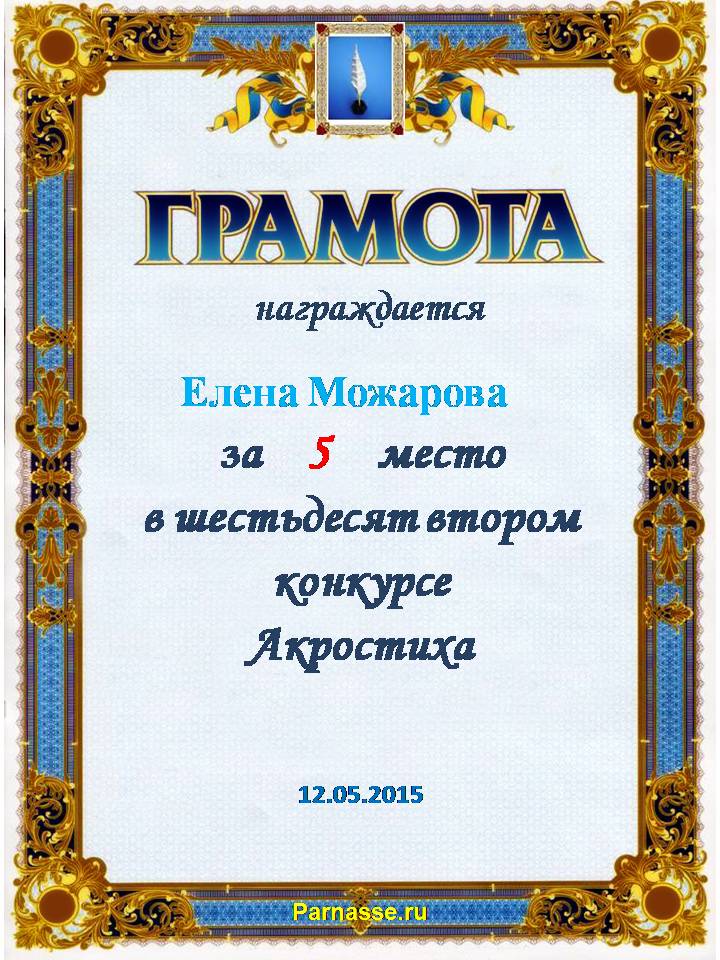Грамота за 5 место во 2 годовом конкурсе Акростиха по итогам судейского голосования! ПОЗДРАВЛЯЮ!