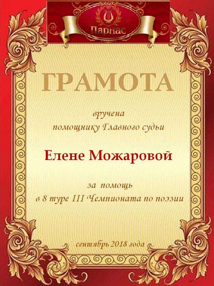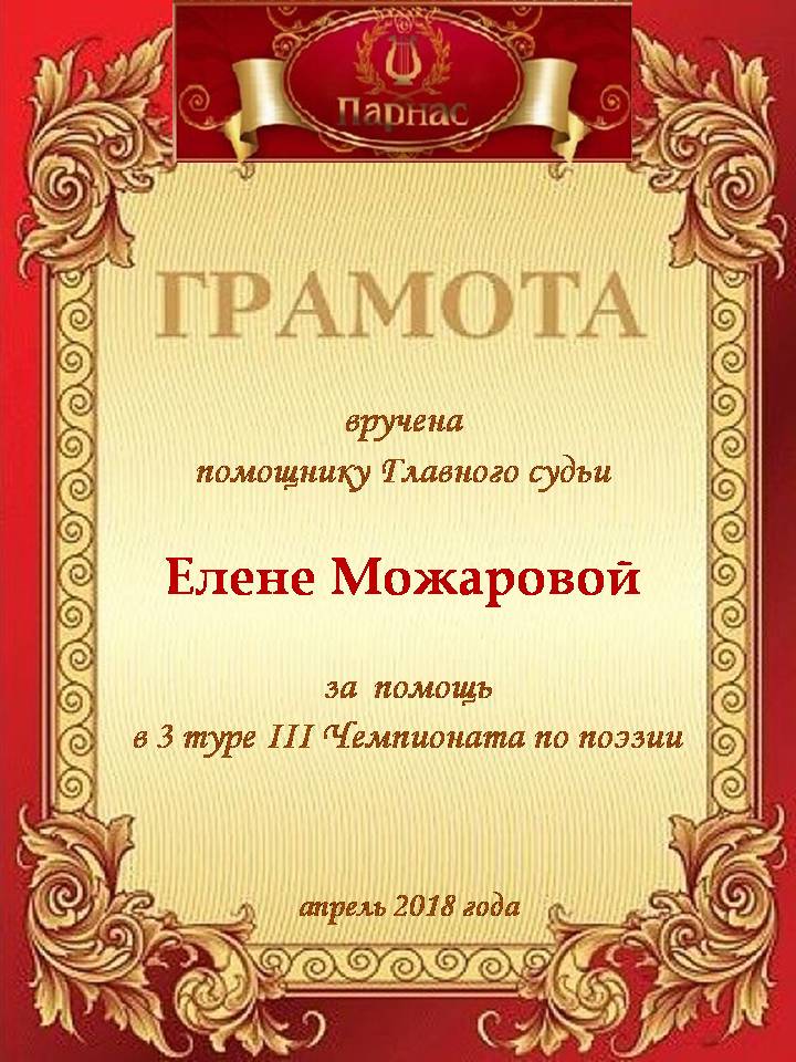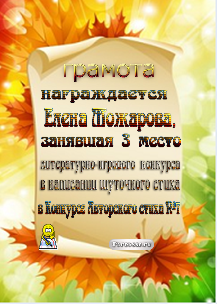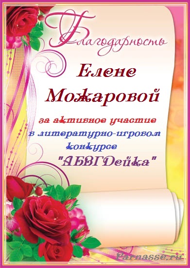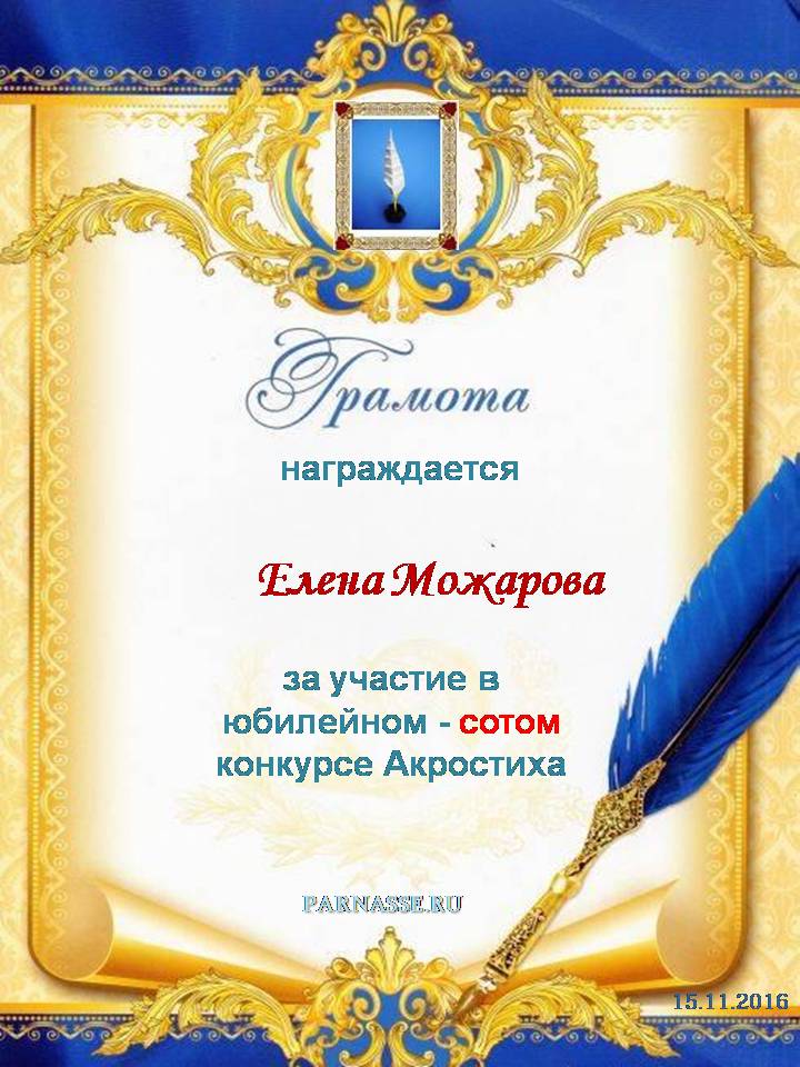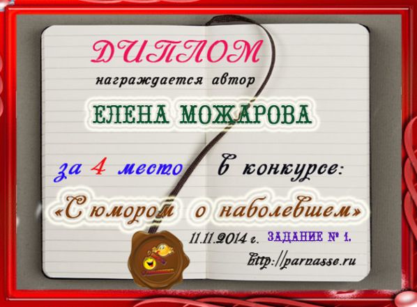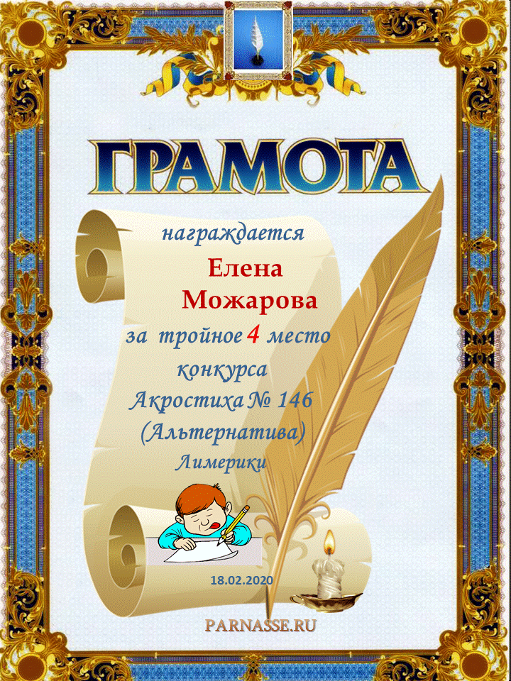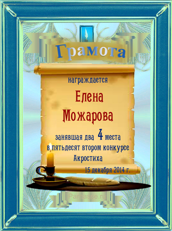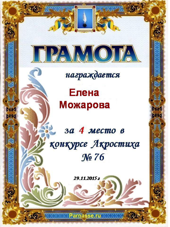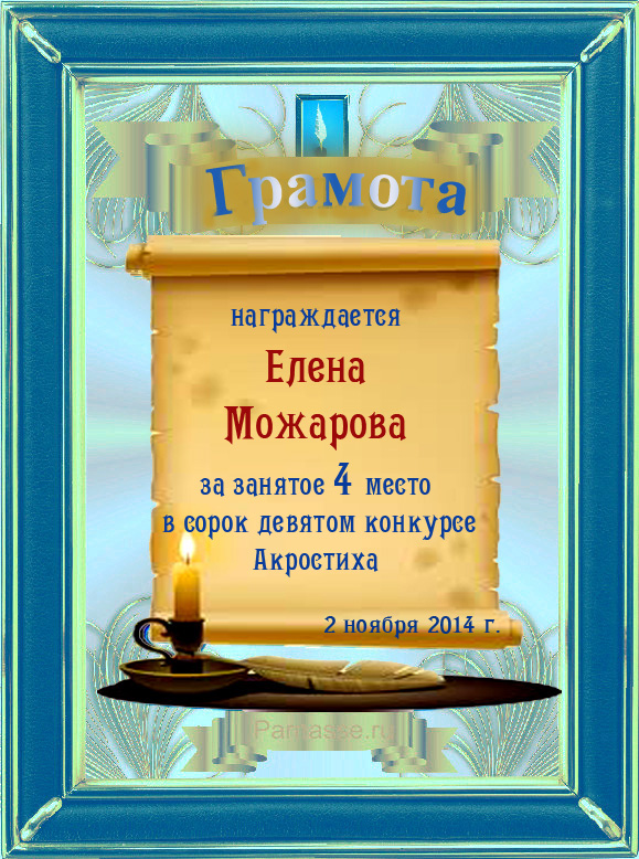 Похвальная грамота за 4 место и активное участие в конкурсе лимериков № 62+ (24.11.2014 г.)