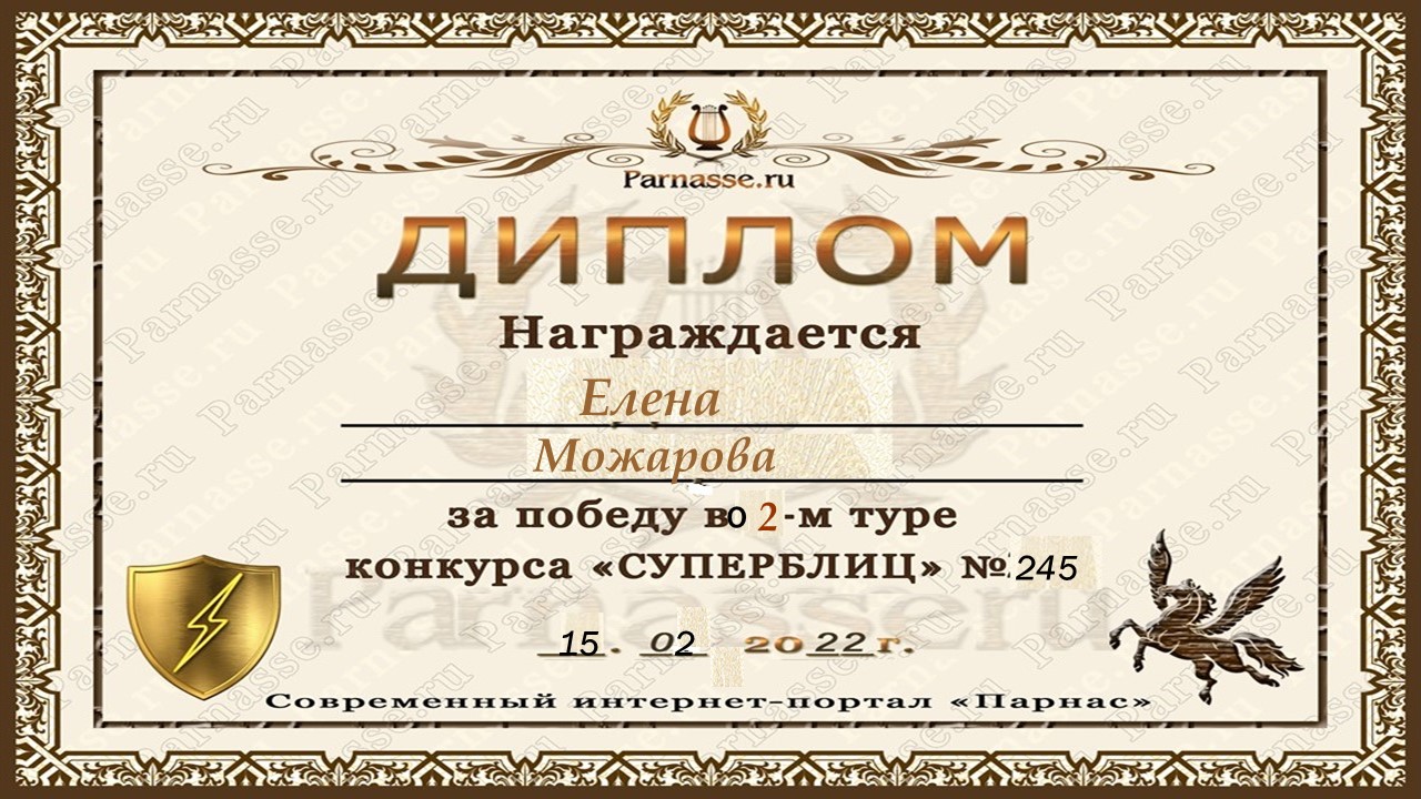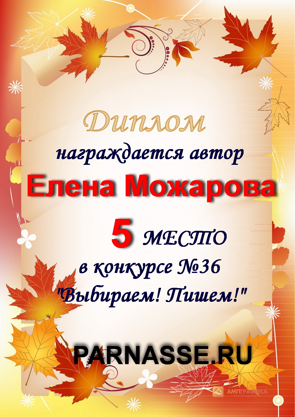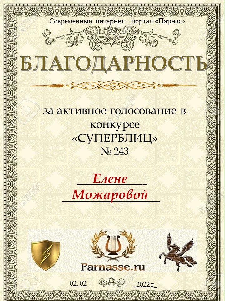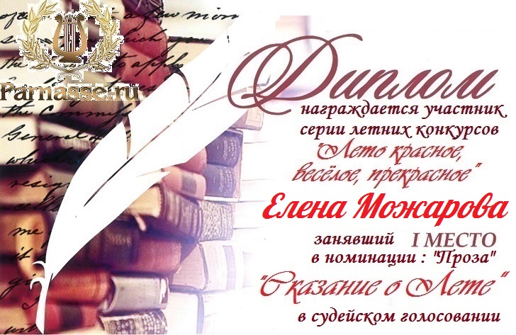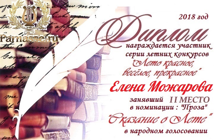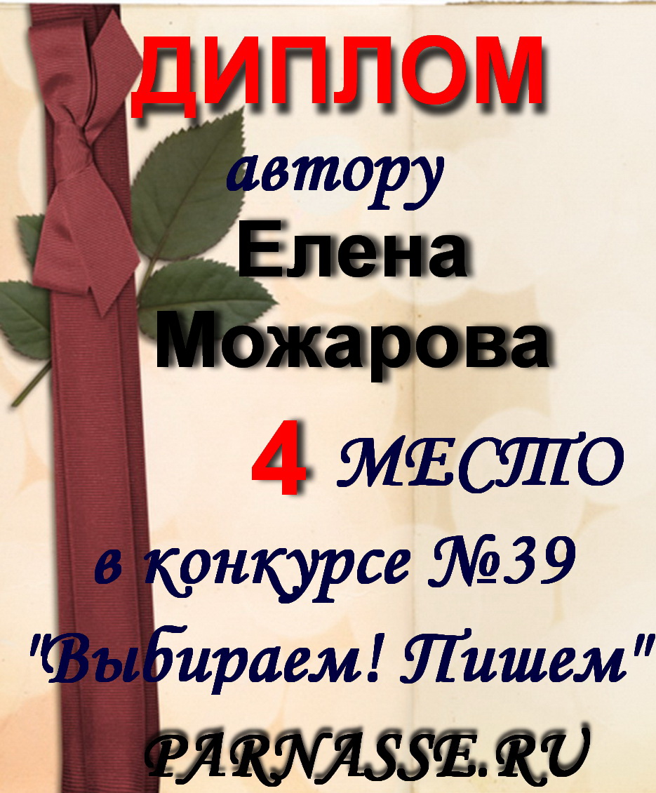 Номинация "Лучшее поздравление Парнасу в прозе". Искренне и от всего сердца благодарим Вас, ЕЛЕНА, за участие в юбилейном конкурсе, за Ваши прекрасные, ярчайшие слова благодарности нашему порталу! Мы желаем Вам крепкого здоровья, жизнелюбия, творческой Музы и исполнения самых заветных желаний, которые только у Вас есть!