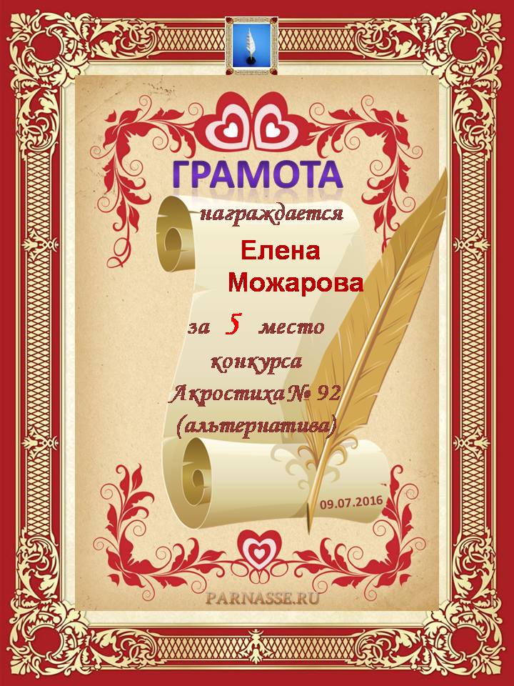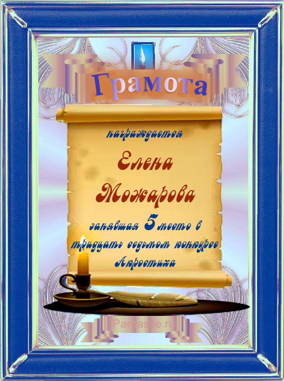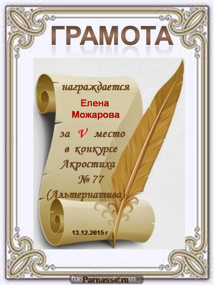 Грамота за 5 место во 2 годовом Альтернативном итоговом конкурсе АКРОСТИХА! ПОЗДРАВЛЯЮ!