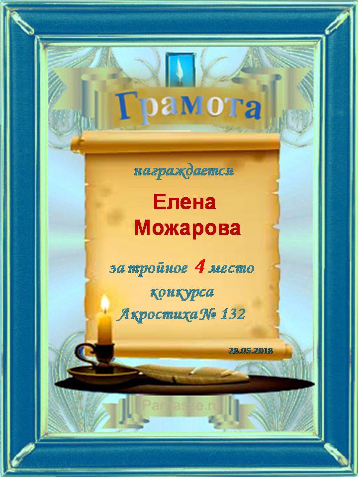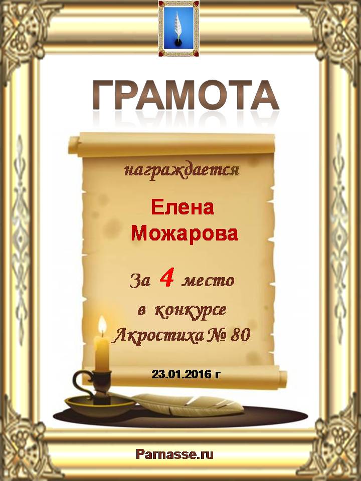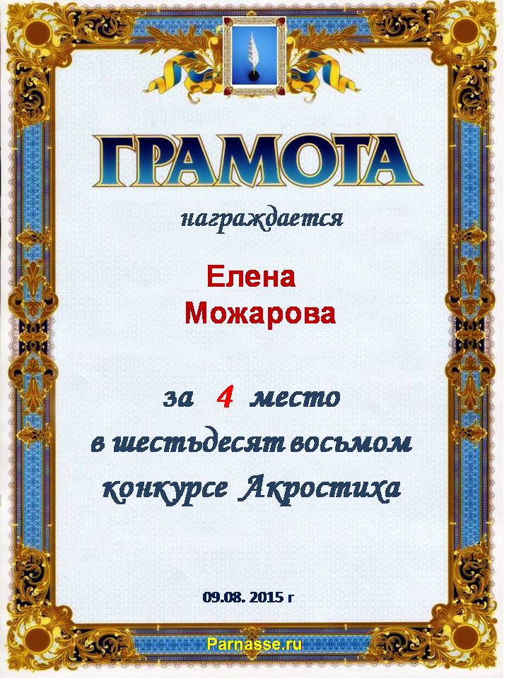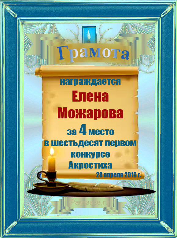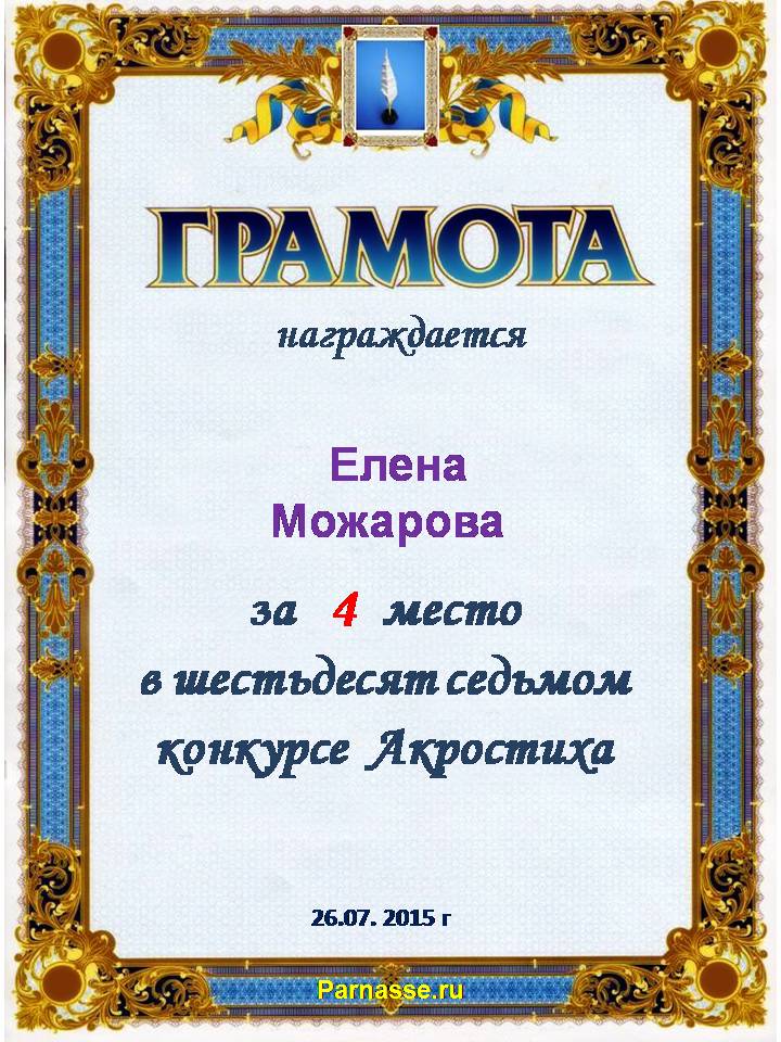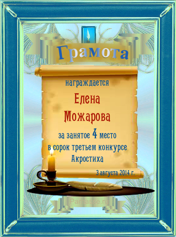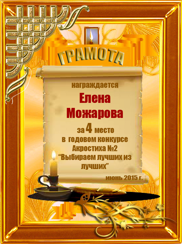 Грамота за 4 место во 2 годовом конкурсе Акростиха по итогам судейского голосования (Альтернатива)! ПОЗДРАВЛЯЮ!