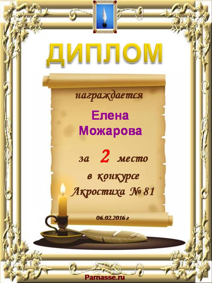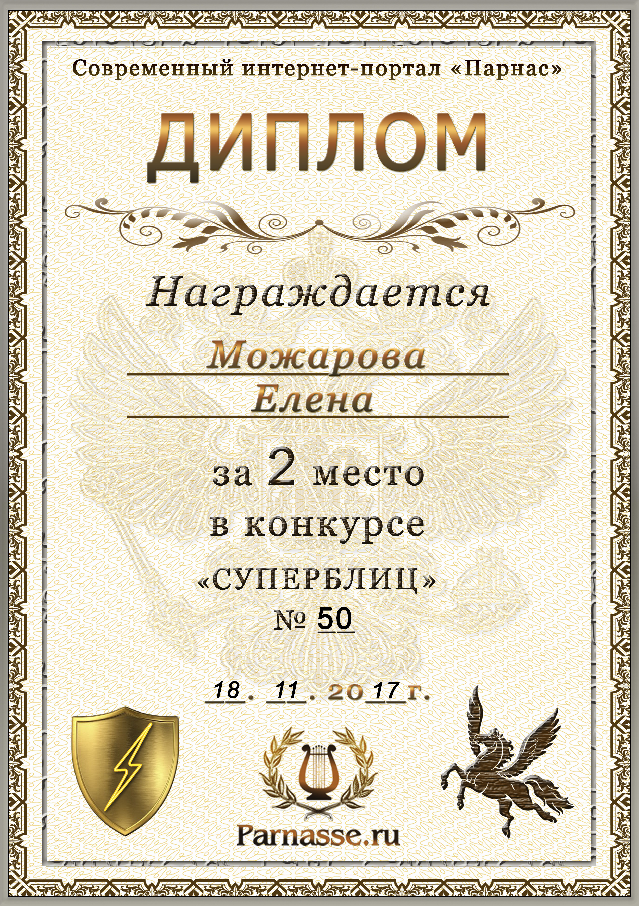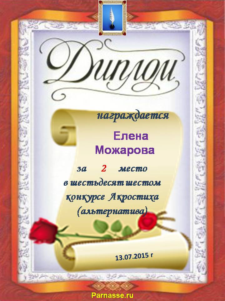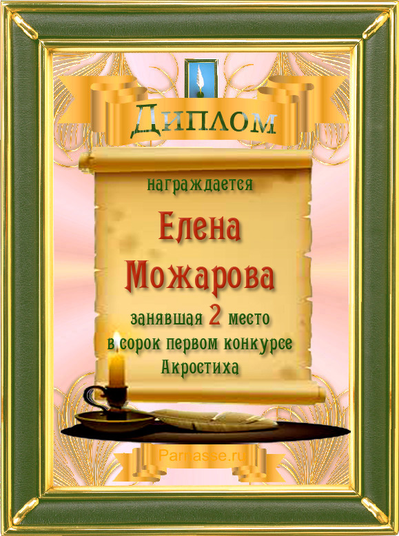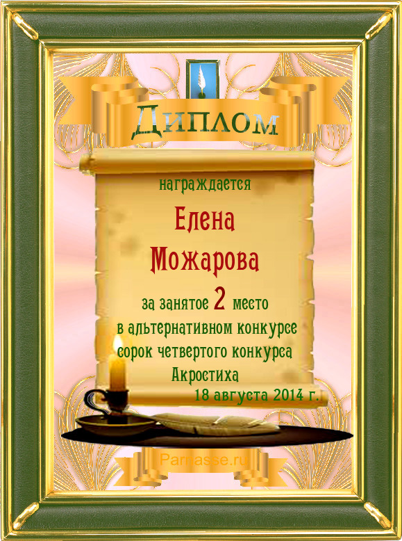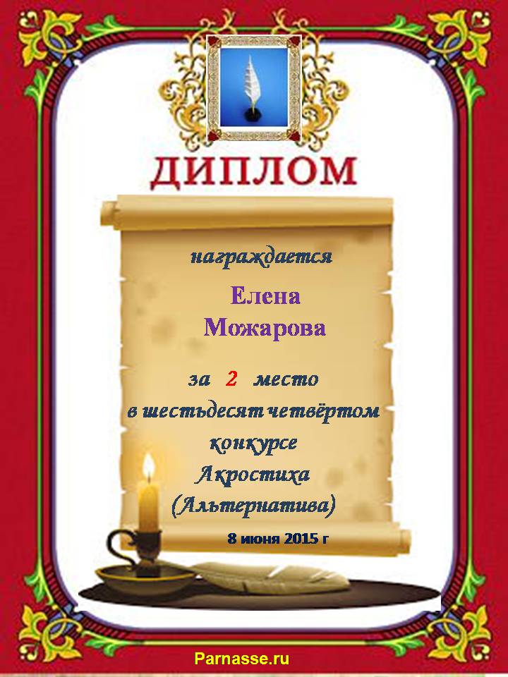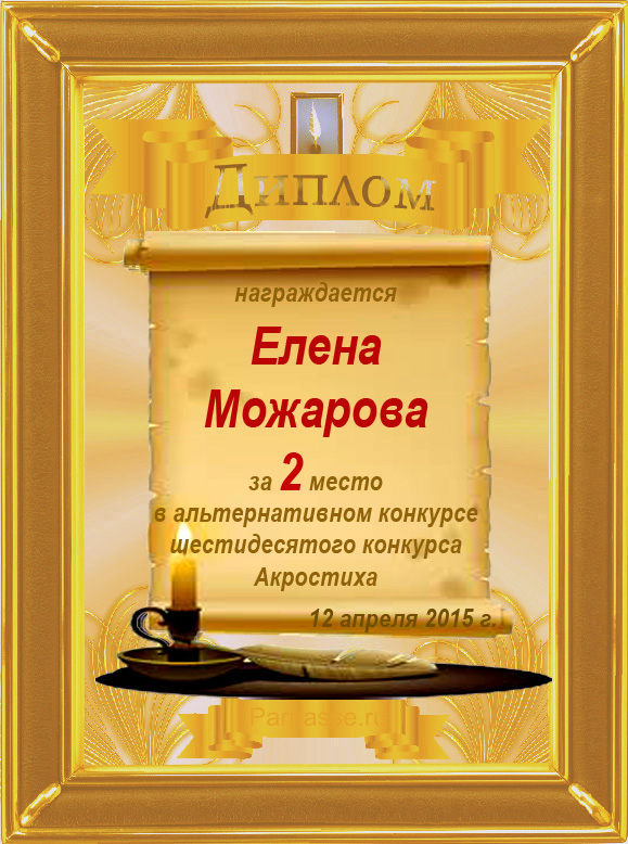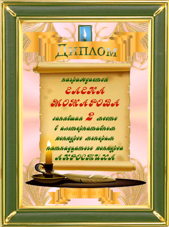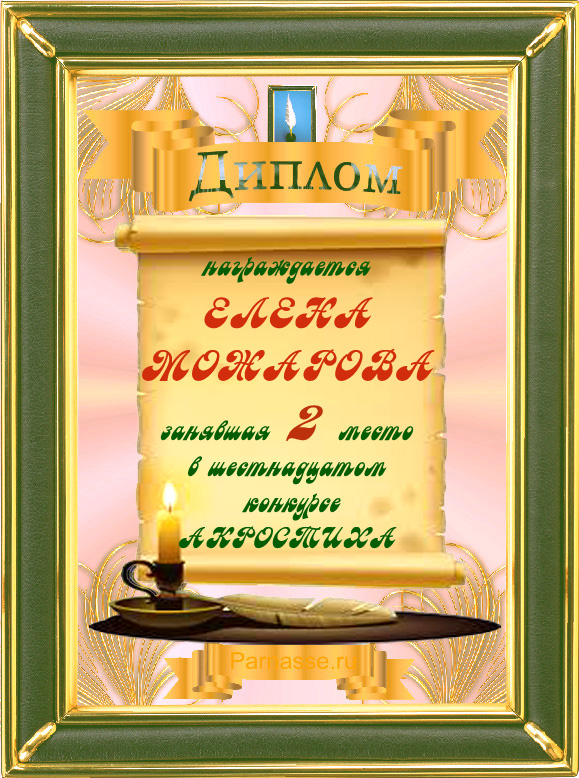 Диплом за 2 место в 1 годовом итоговом конкурсе АКРОСТИХА (Альтернатива)! ПОЗДРАВЛЯЮ!