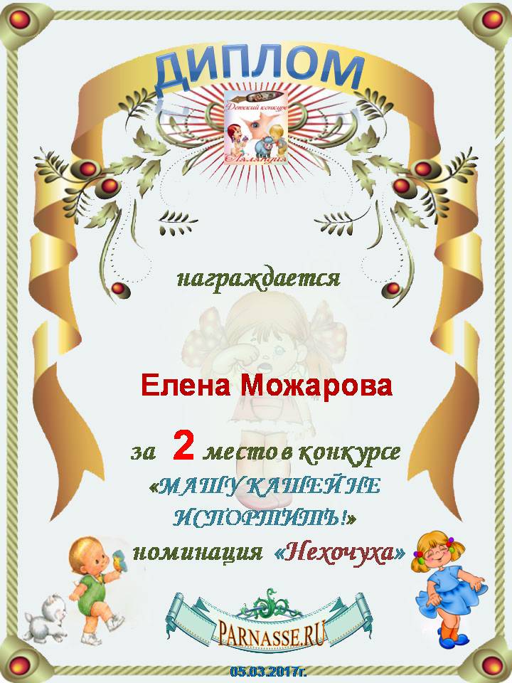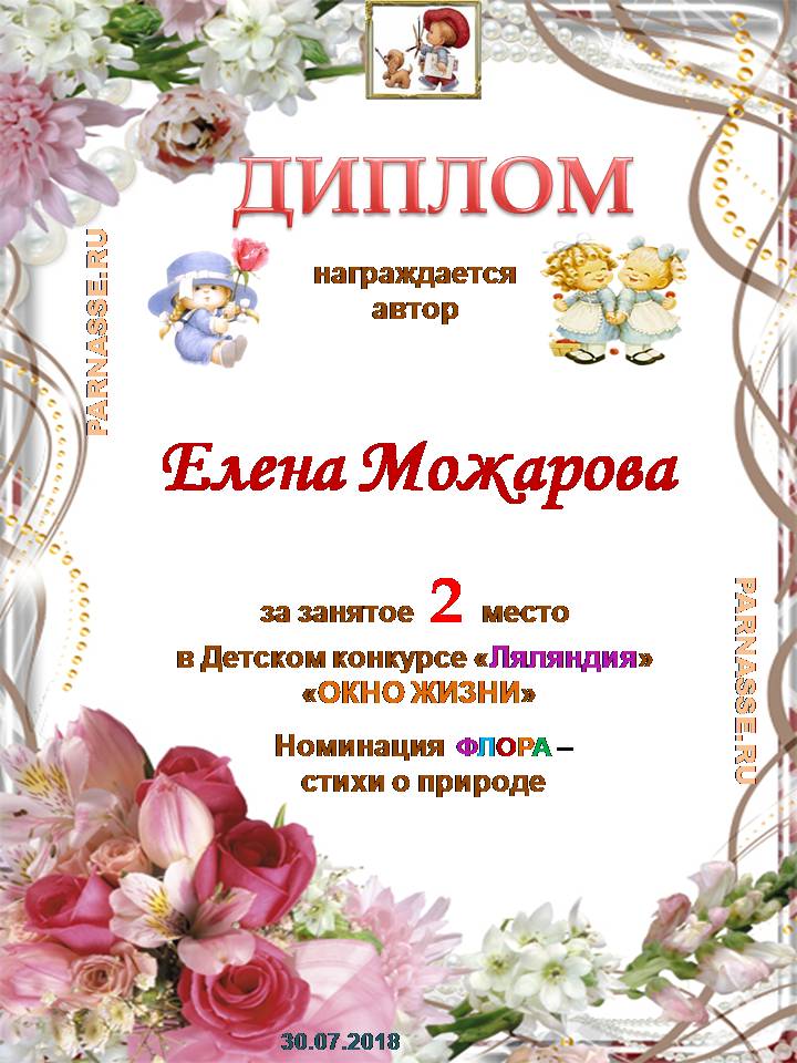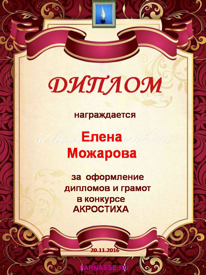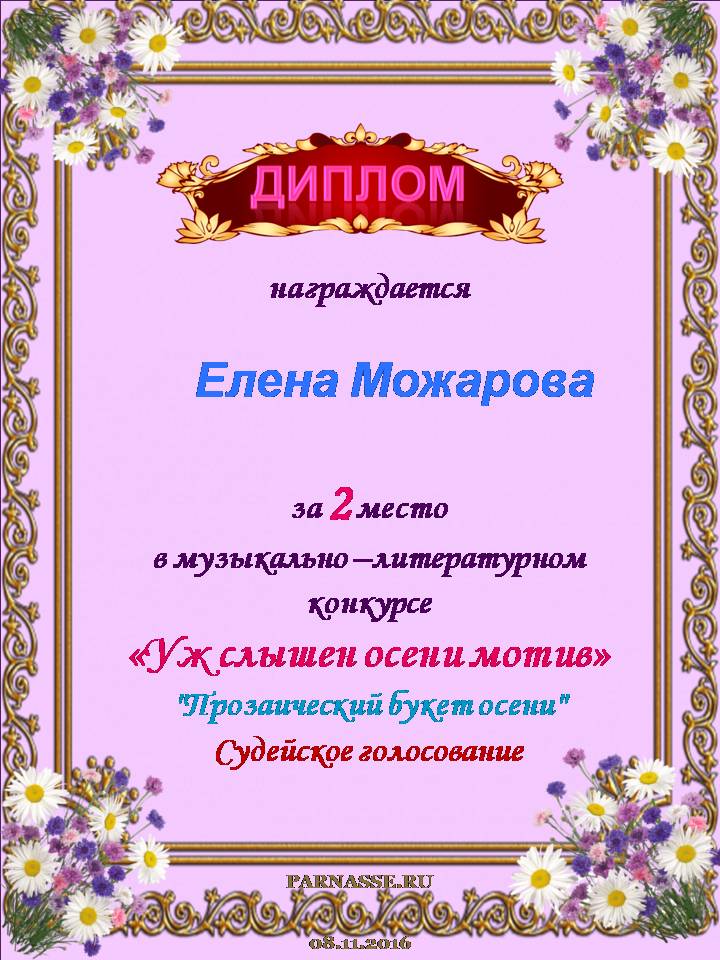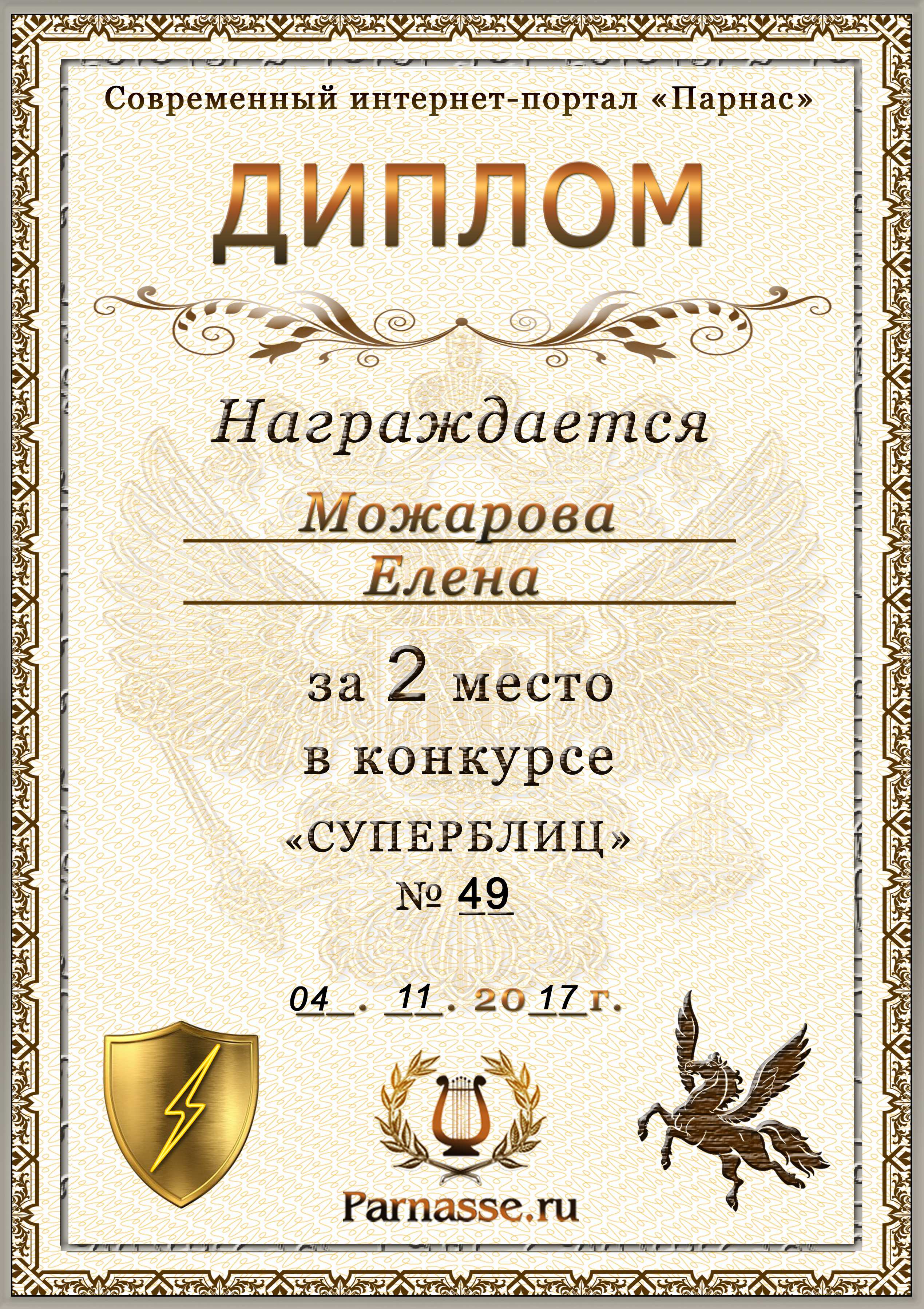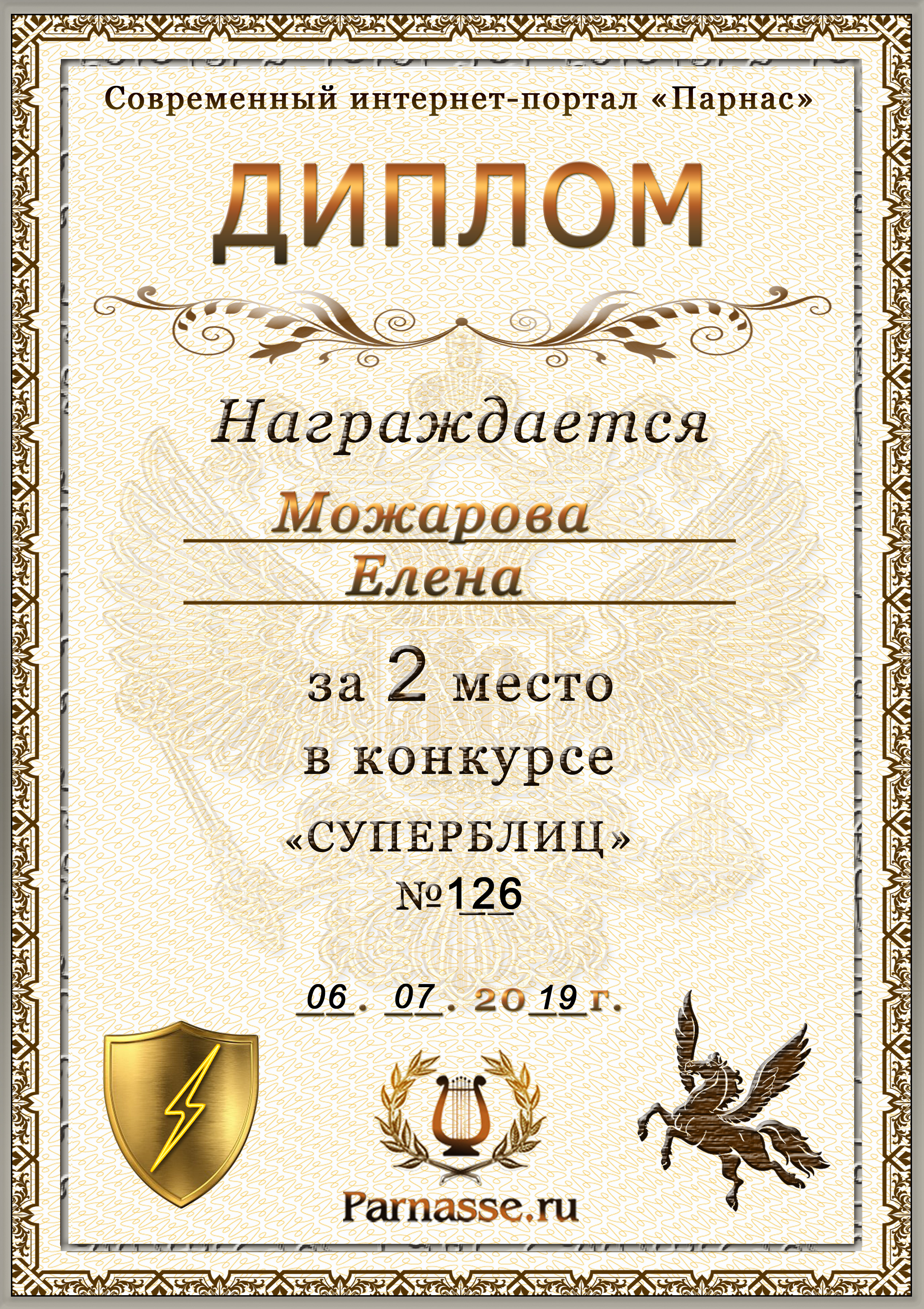Диплом за 2 место в 1 годовом итоговом конкурсе АКРОСТИХА (Альтернатива)! ПОЗДРАВЛЯЮ!