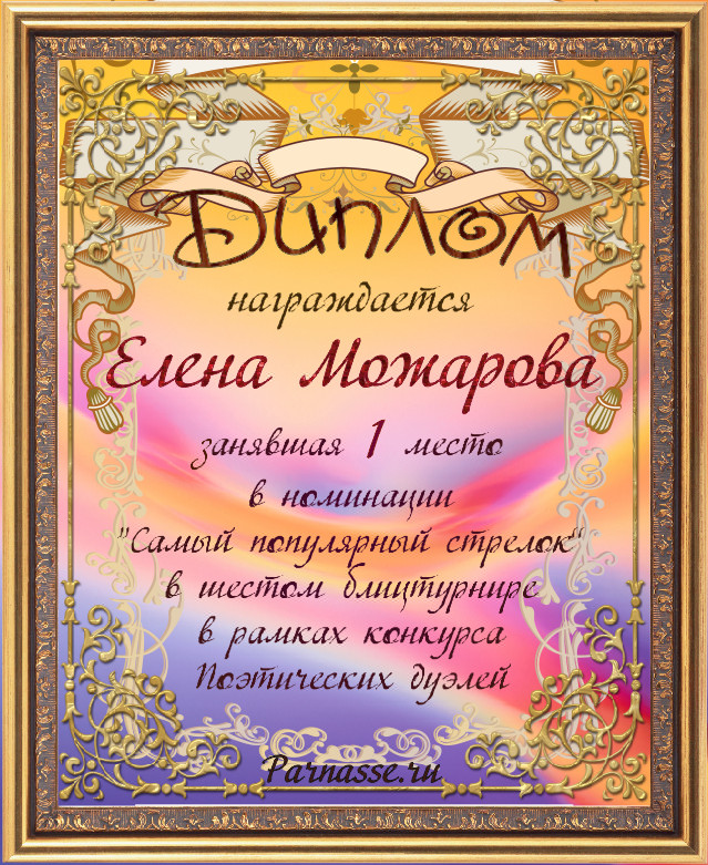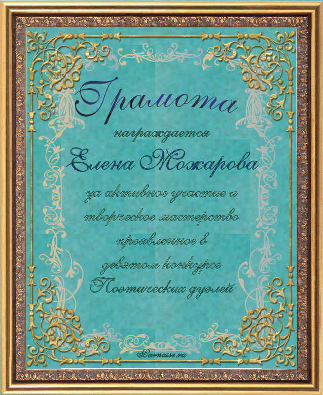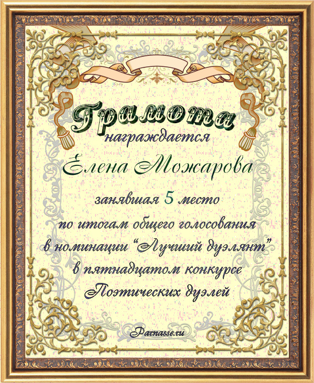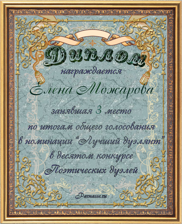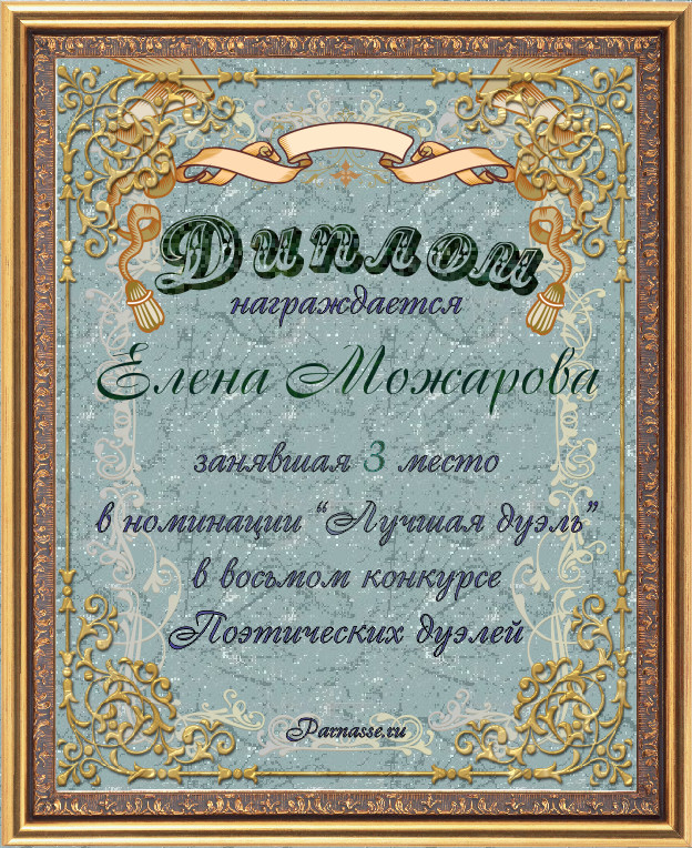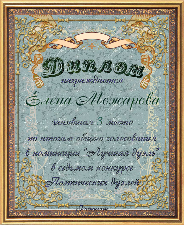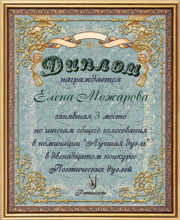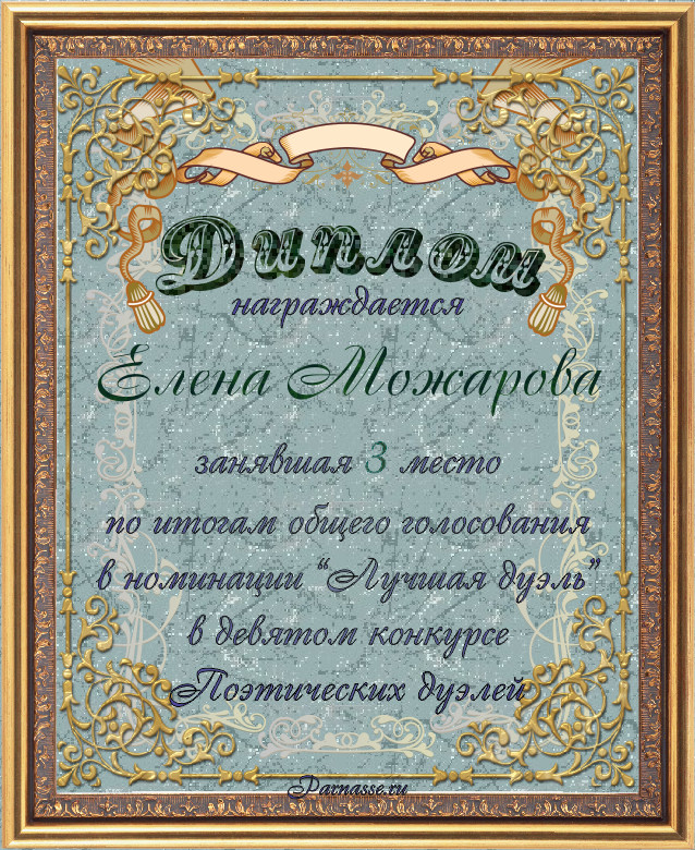 Диплом за 3-е место в номинации "Лучшая дуэль" по итогам общего голосования в девятом конкурсе поэтических дуэлей(№ 8.1)