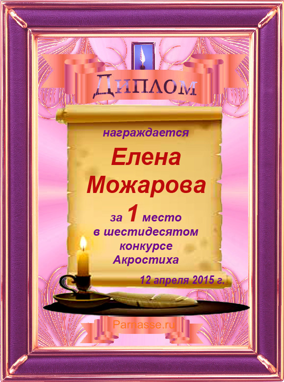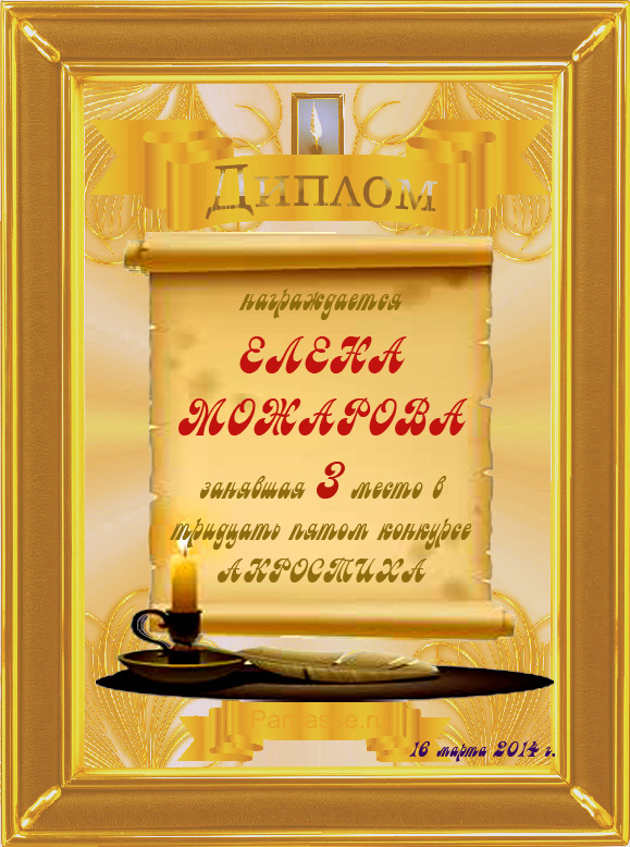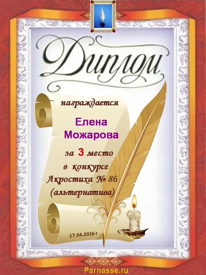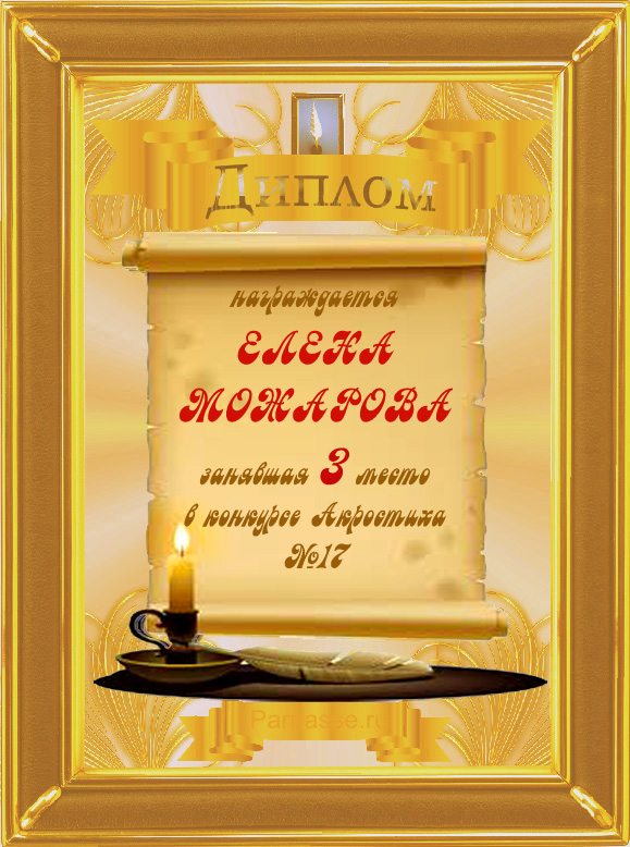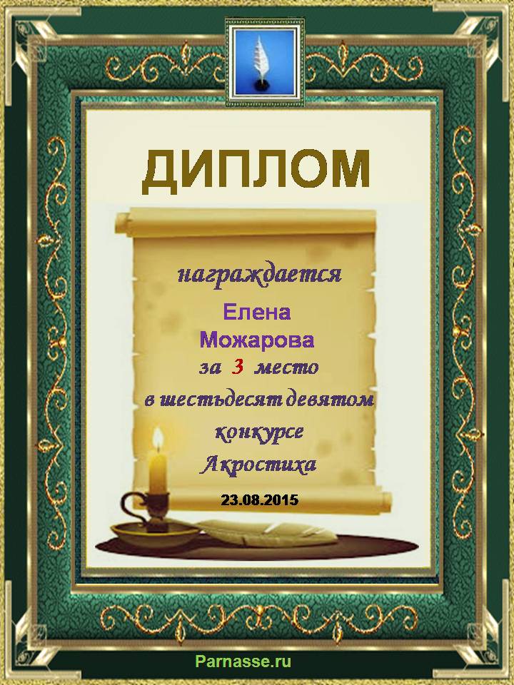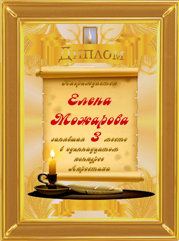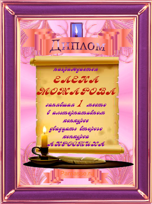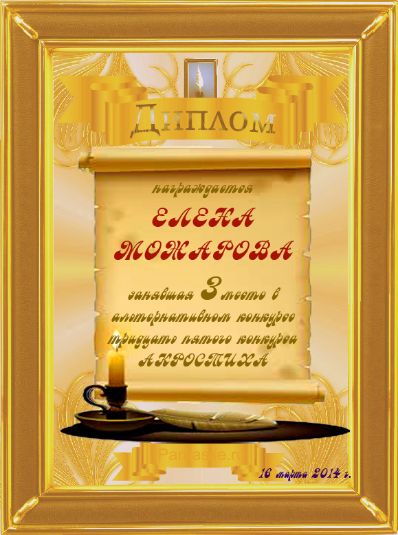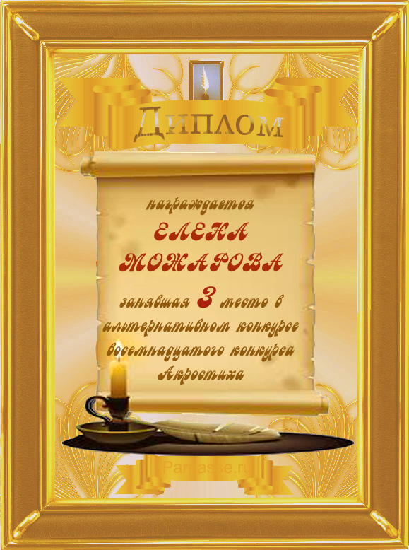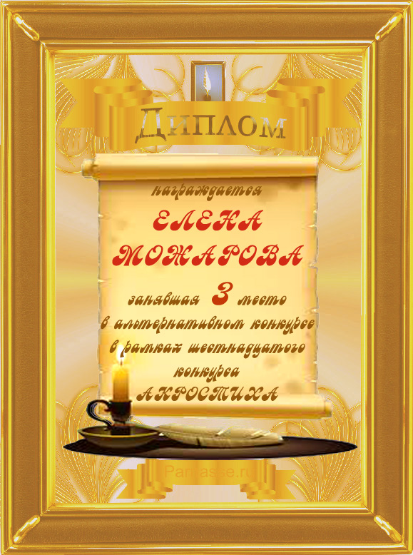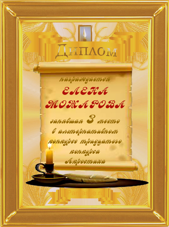 Диплом за двойное 3 место в 58 конкурсе АКРОСТИХА (Альтернатива)! ПОЗДРАВЛЯЮ!