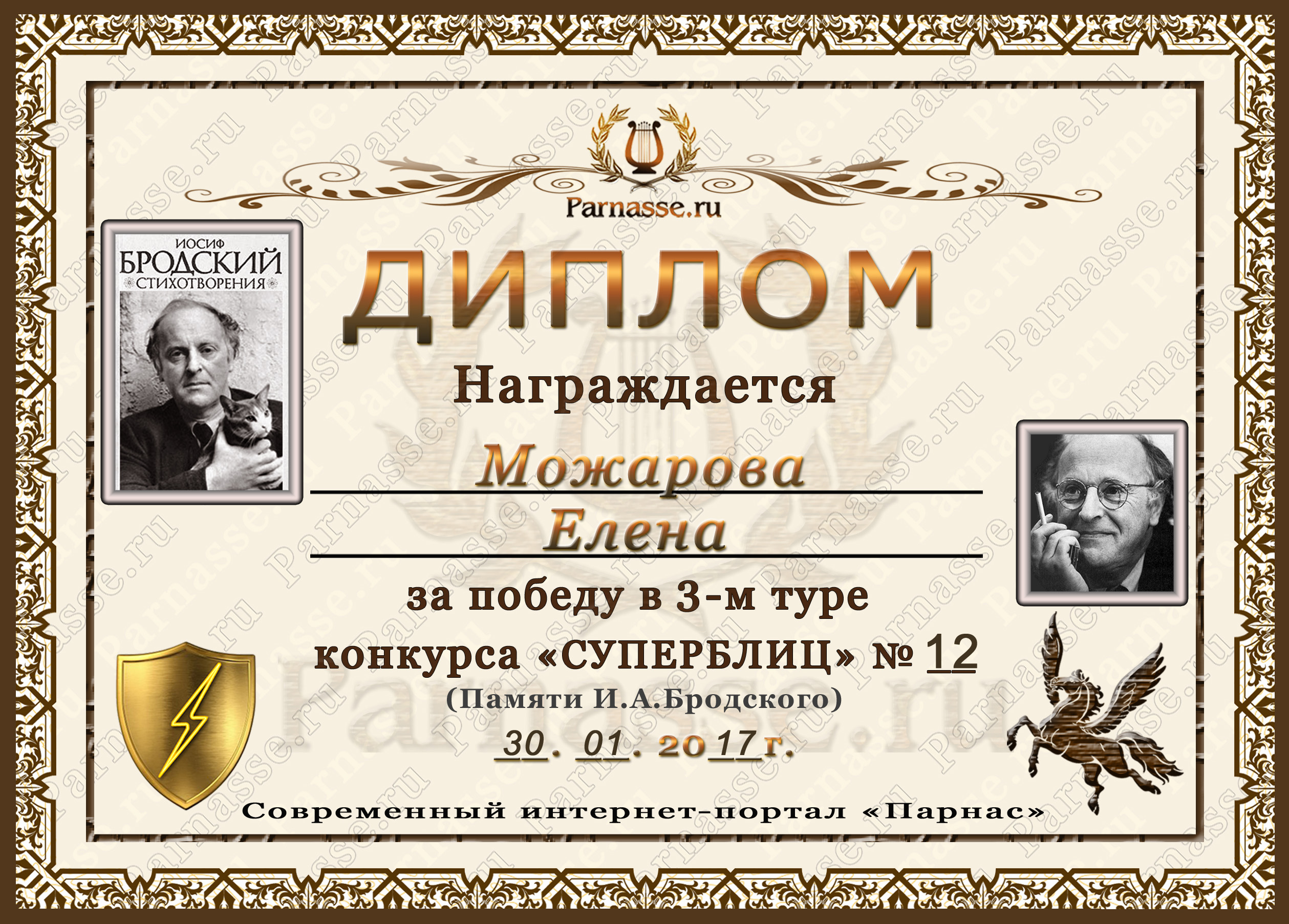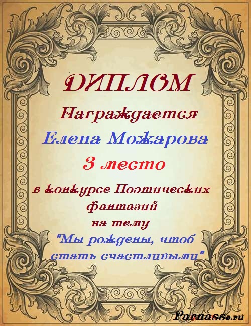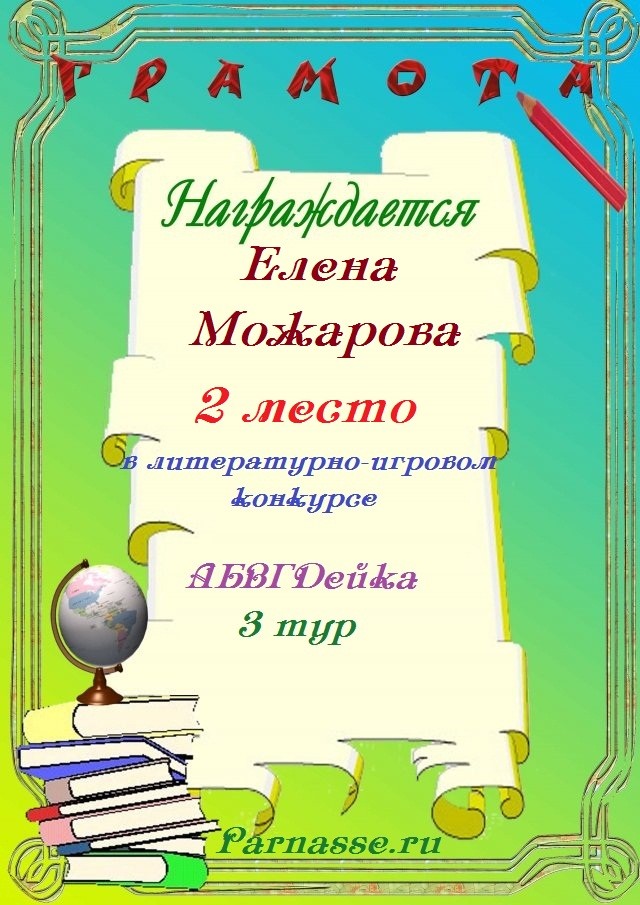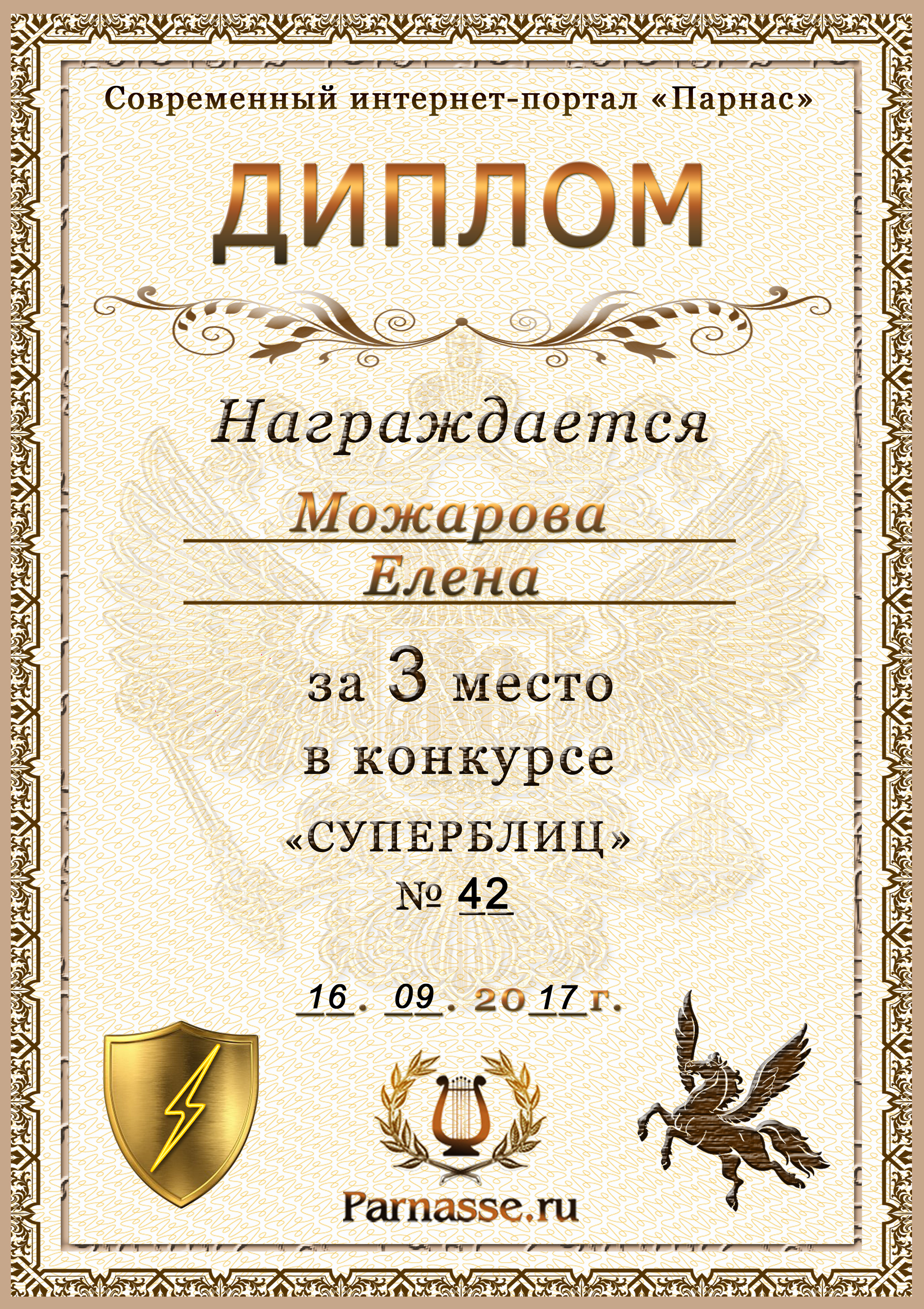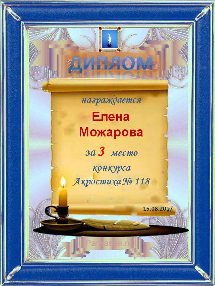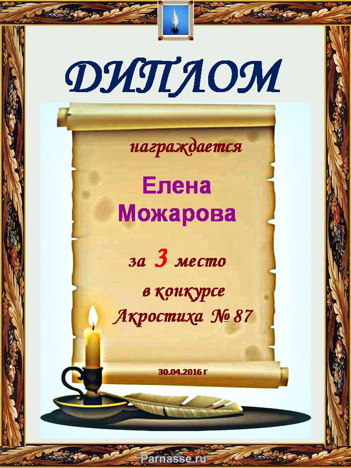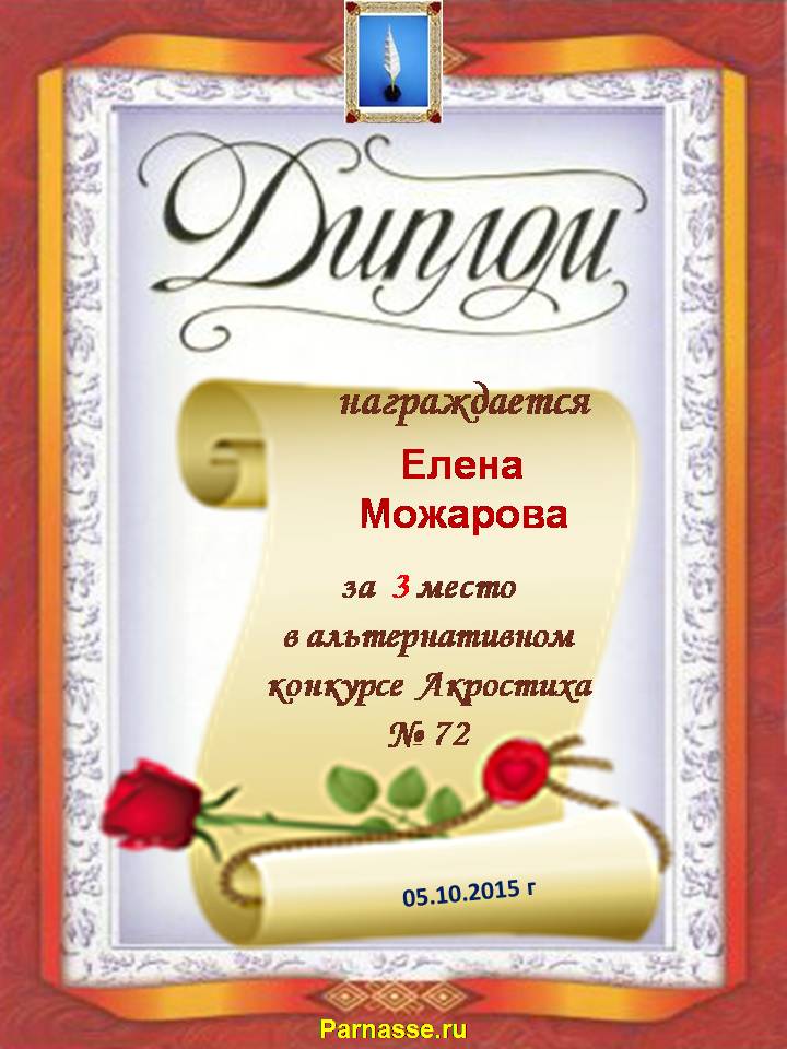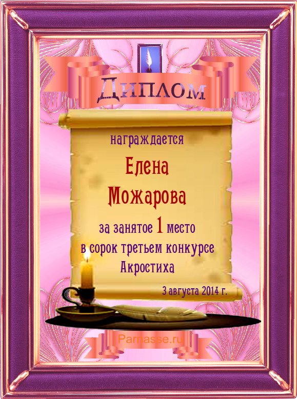 Диплом за двойное 3 место в 58 конкурсе АКРОСТИХА (Альтернатива)! ПОЗДРАВЛЯЮ!