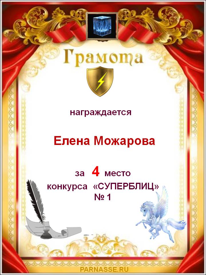 Похвальная грамота за 4 место в конкурсе лимериков № 41+ (9.09.2013 г.)