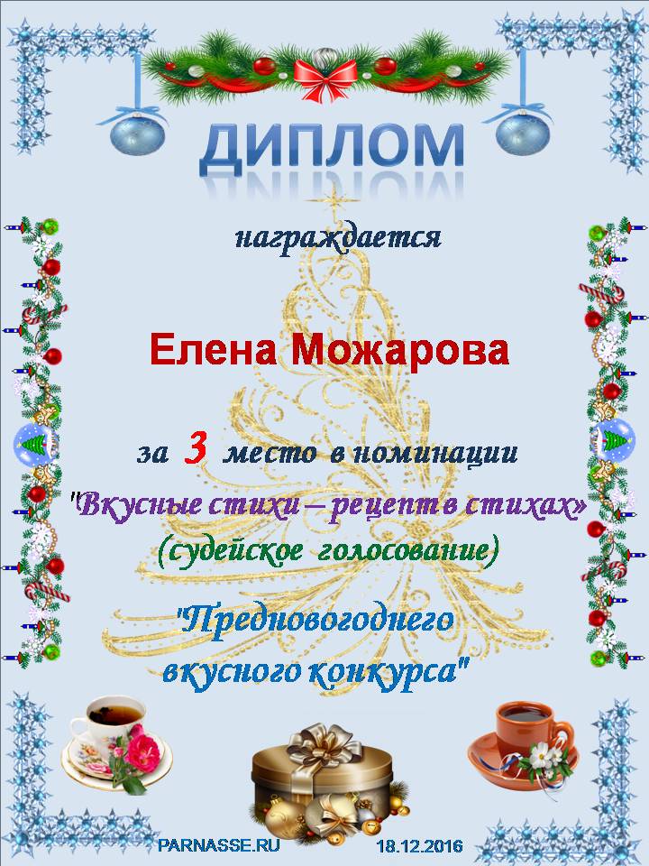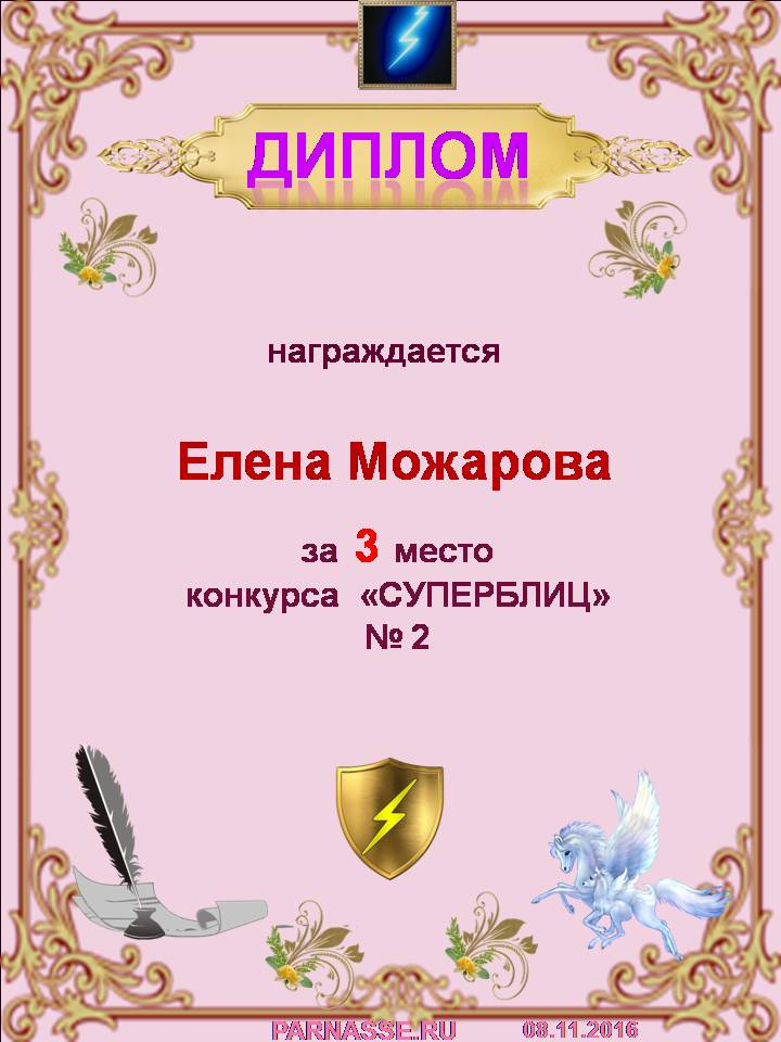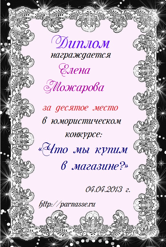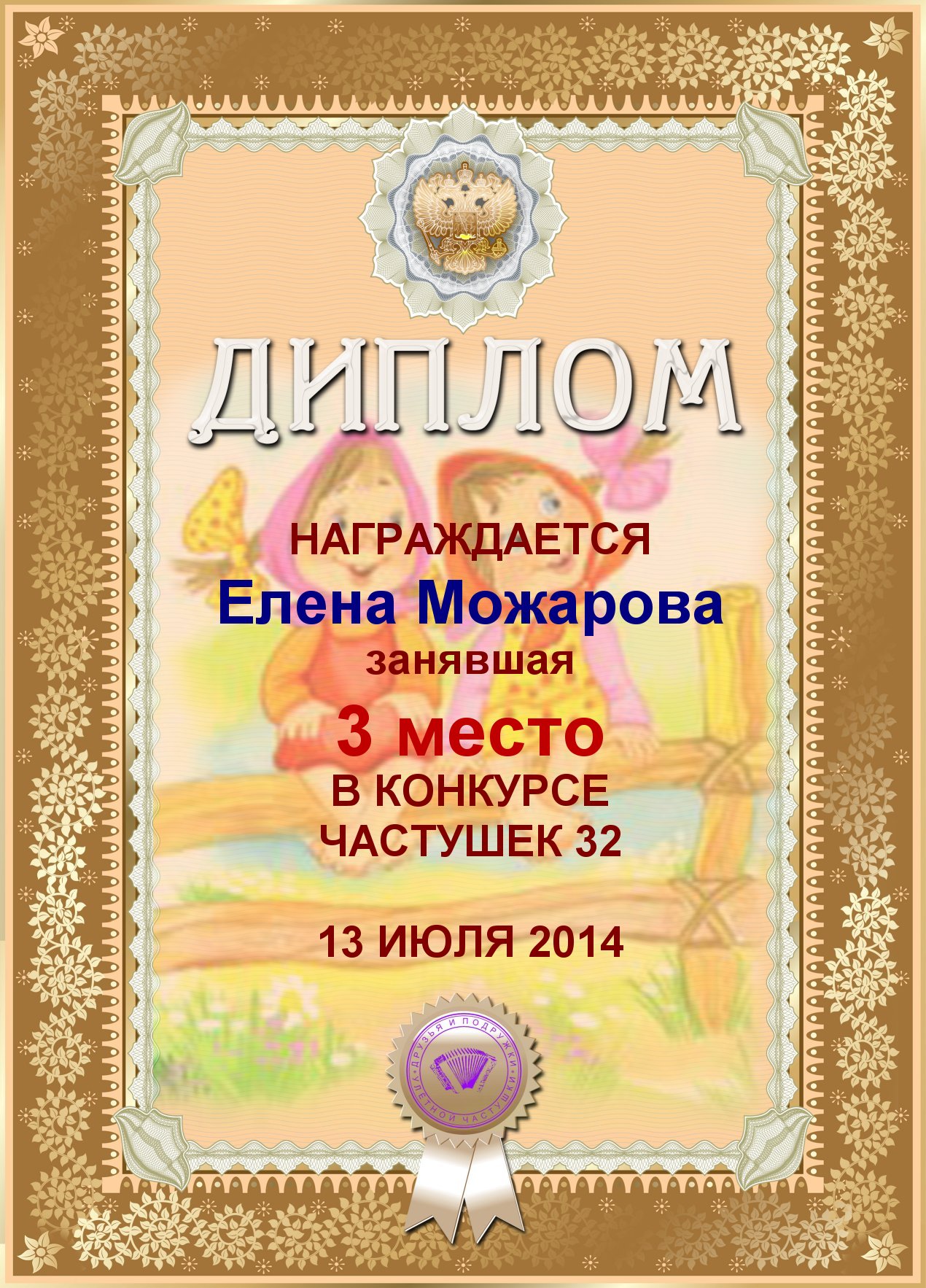 Диплом за победу и 3 место в дополнительной номинации конкурса лимериков № 50+ (2.03.2014 г.)