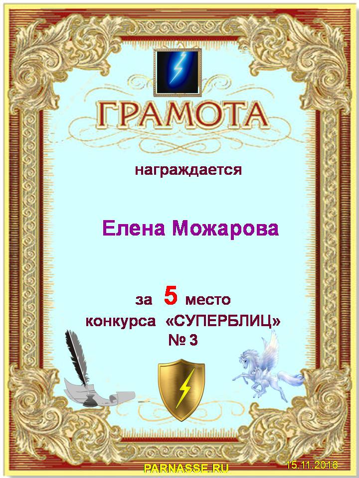 Похвальная грамота за 5 место в конкурсе лимериков № 46+ (9.12.2013 г.)