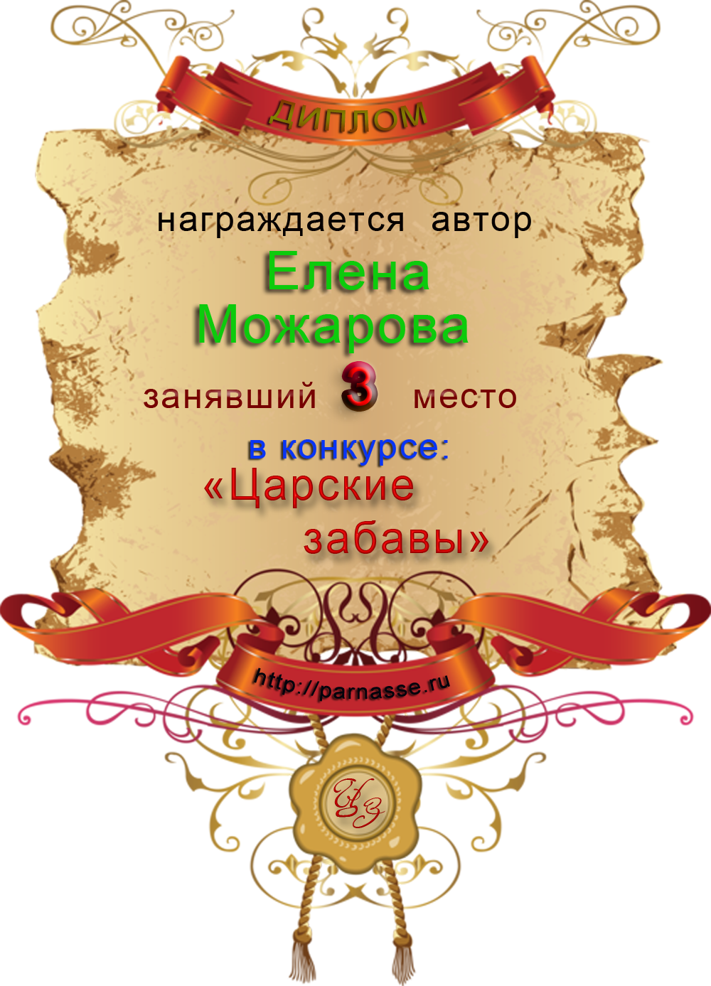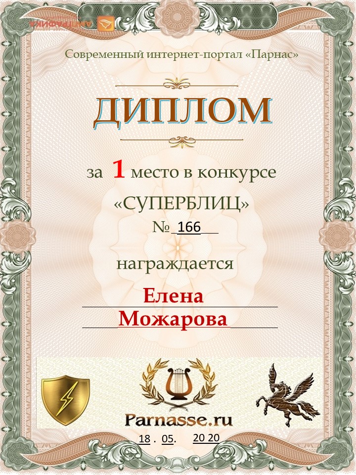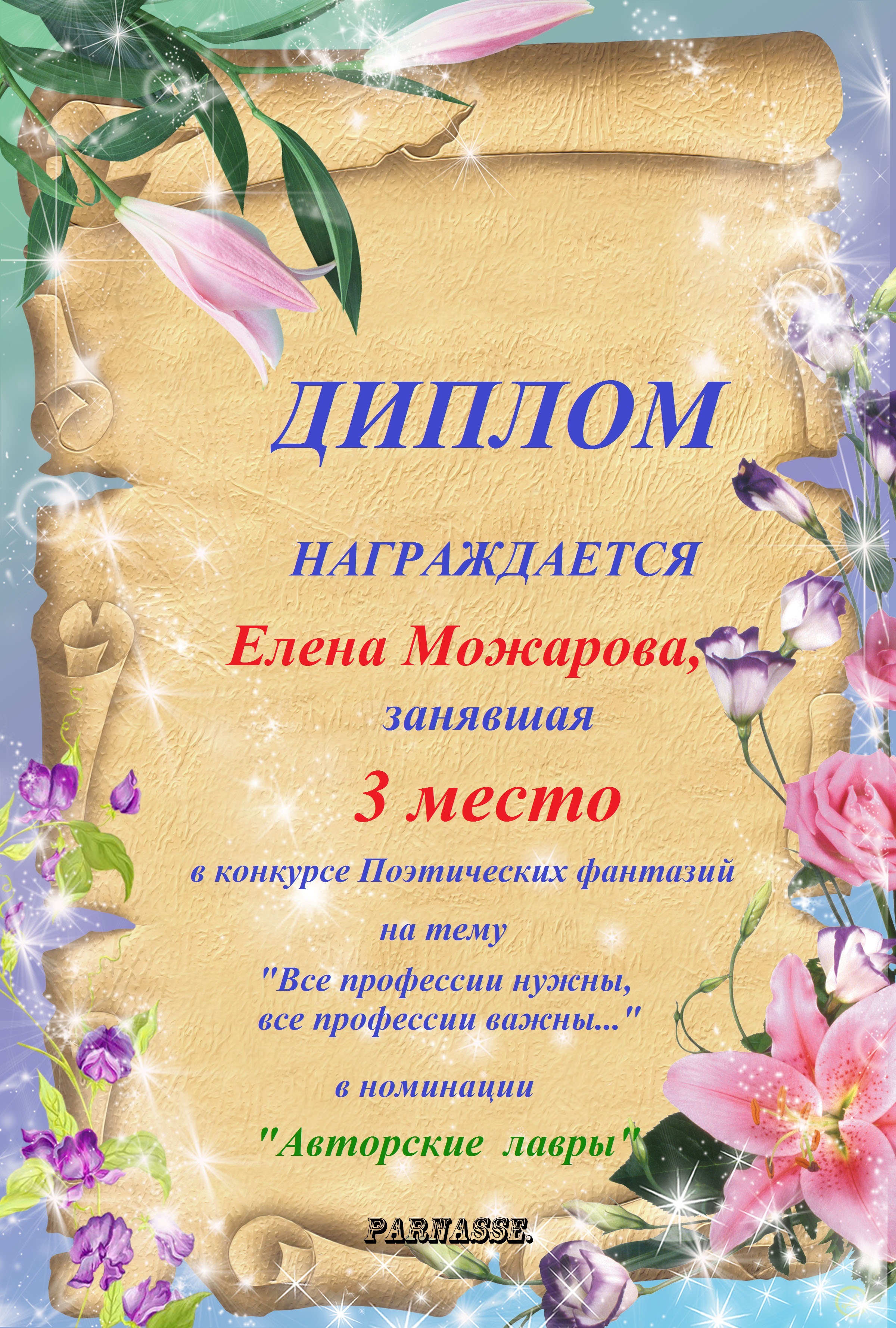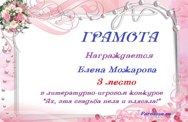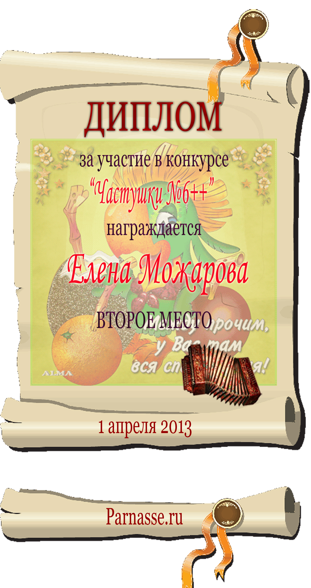 Диплом за 1 место в праздничном конкурсе "Поздравим Парнас с трёхлетием вместе!"