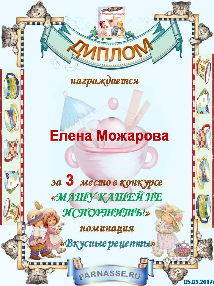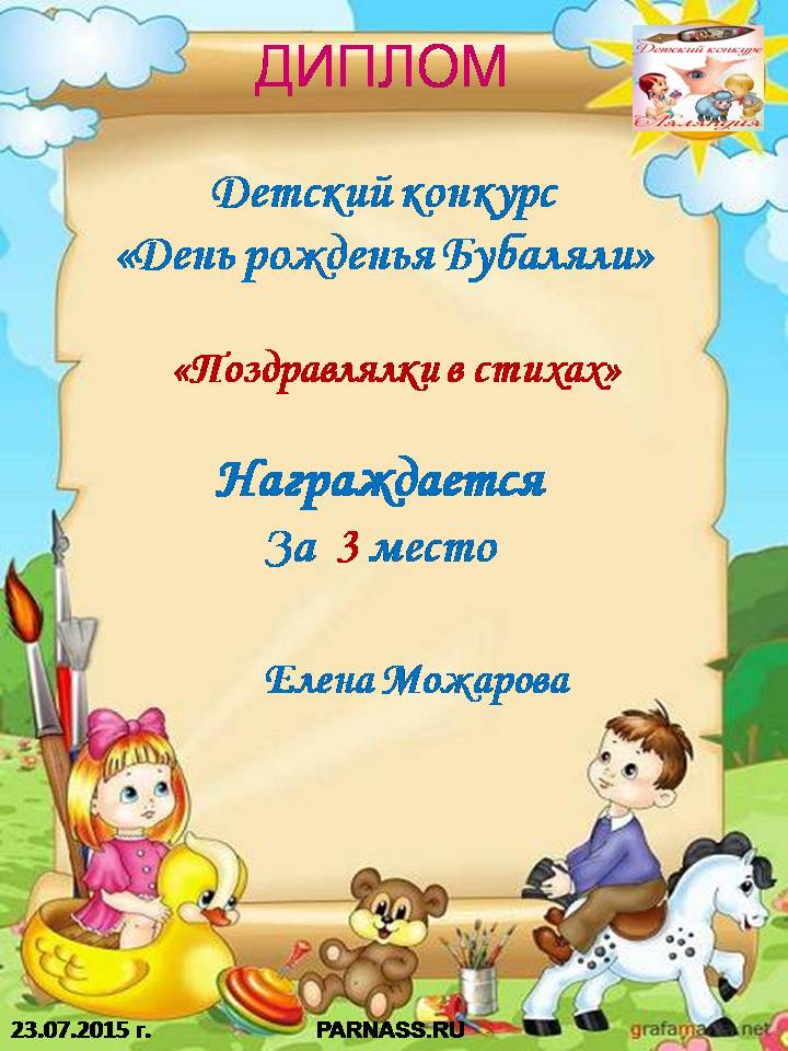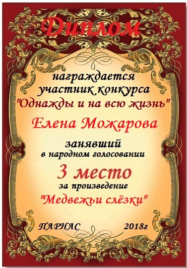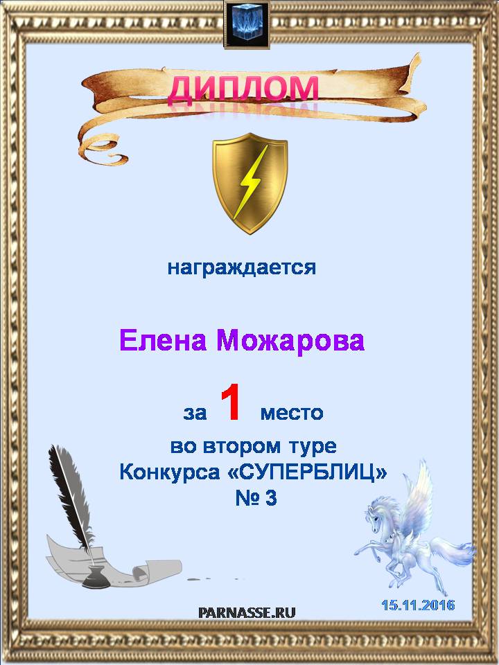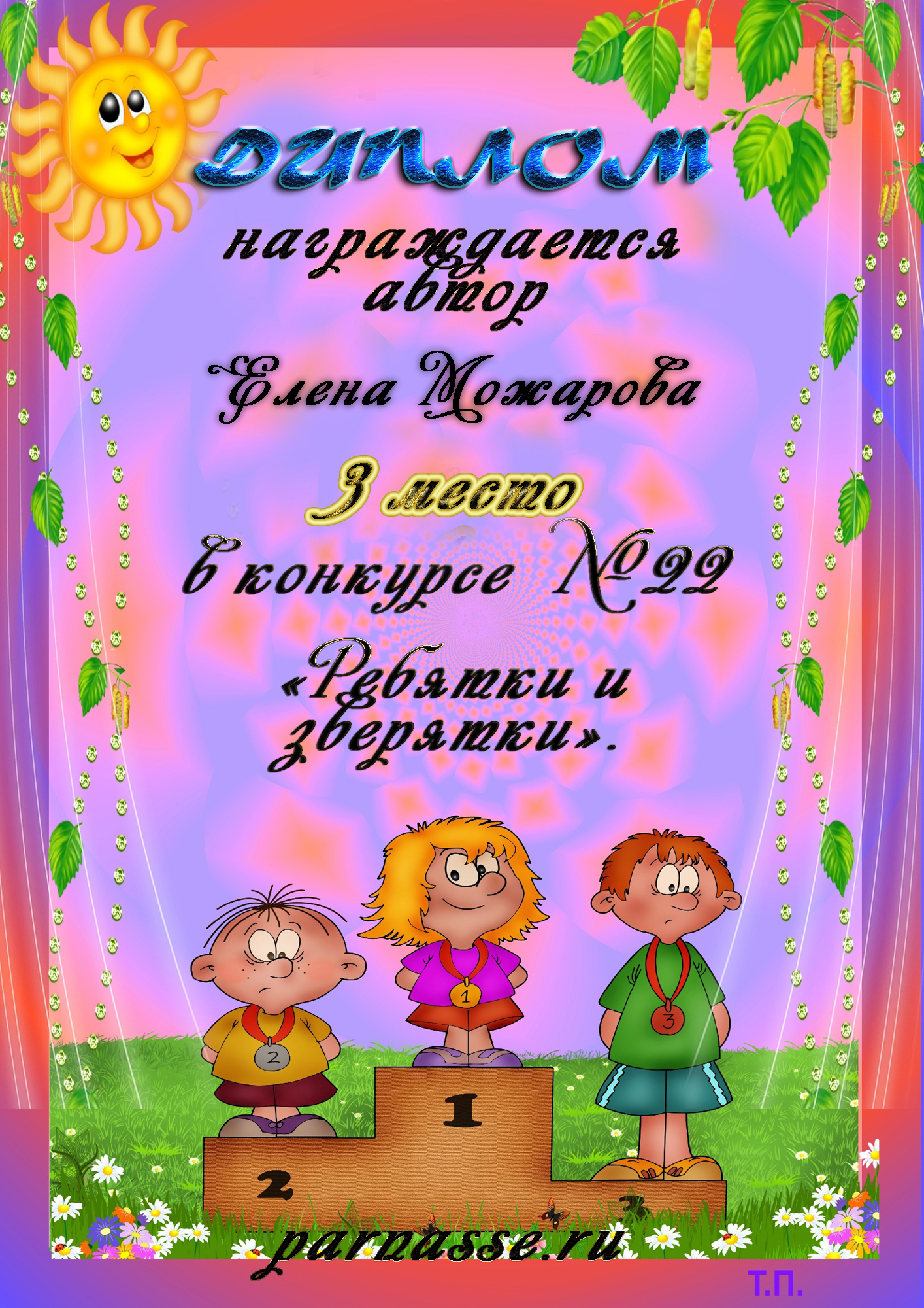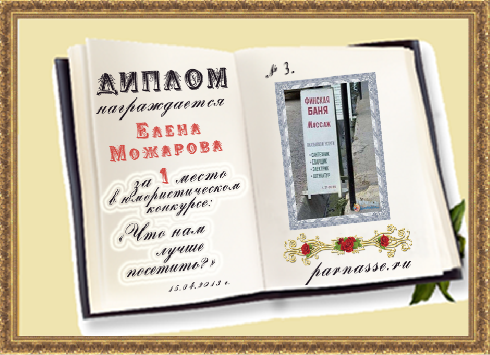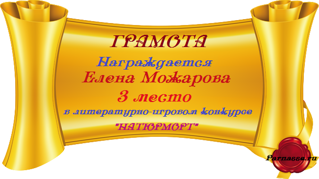 Диплом за 1 место в праздничном конкурсе "Поздравим Парнас с трёхлетием вместе!"