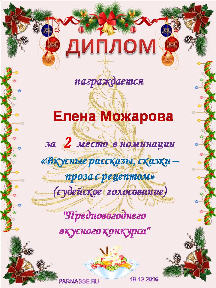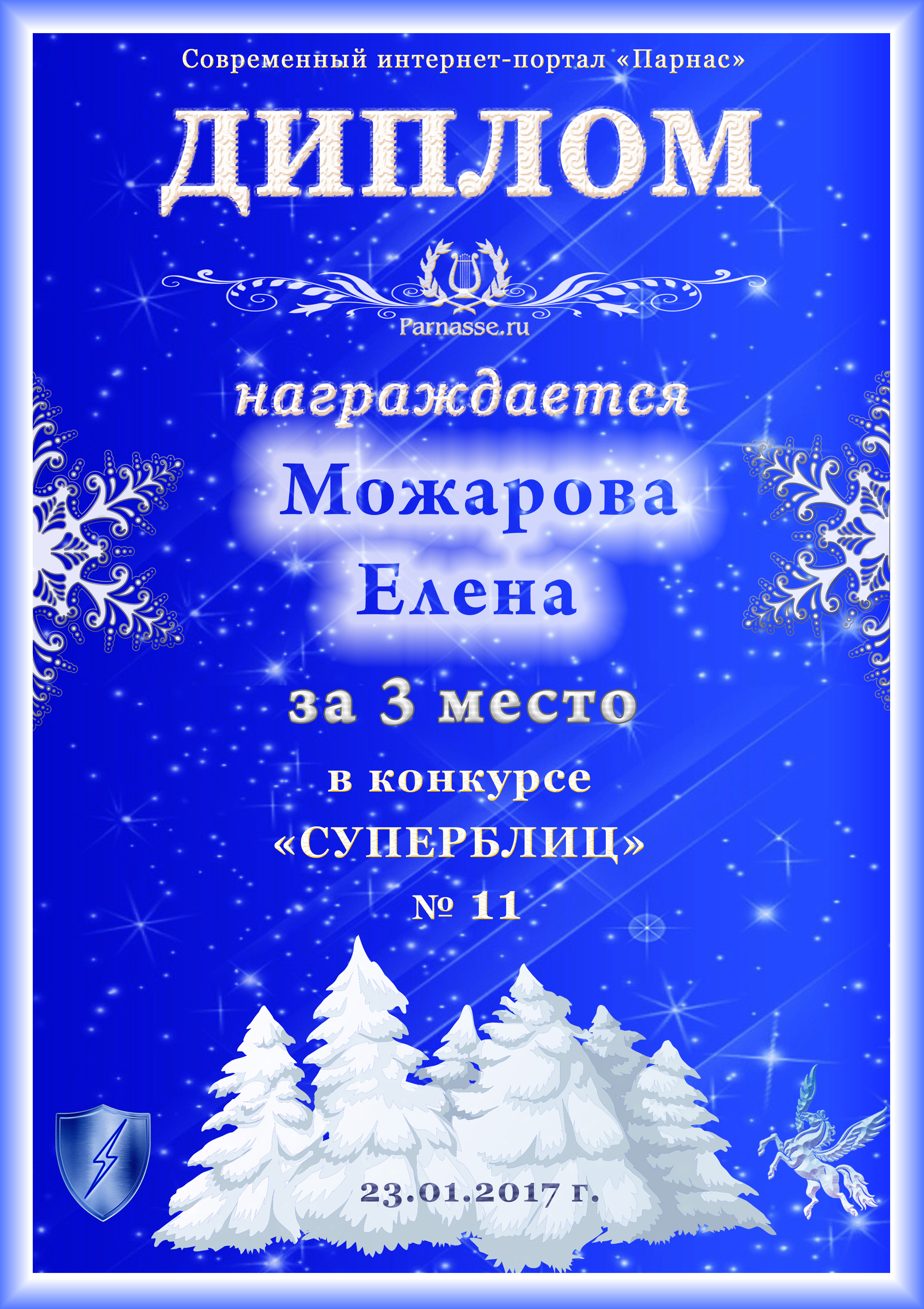 Диплом за 2 место в конкурсе "Литературный снегопад".