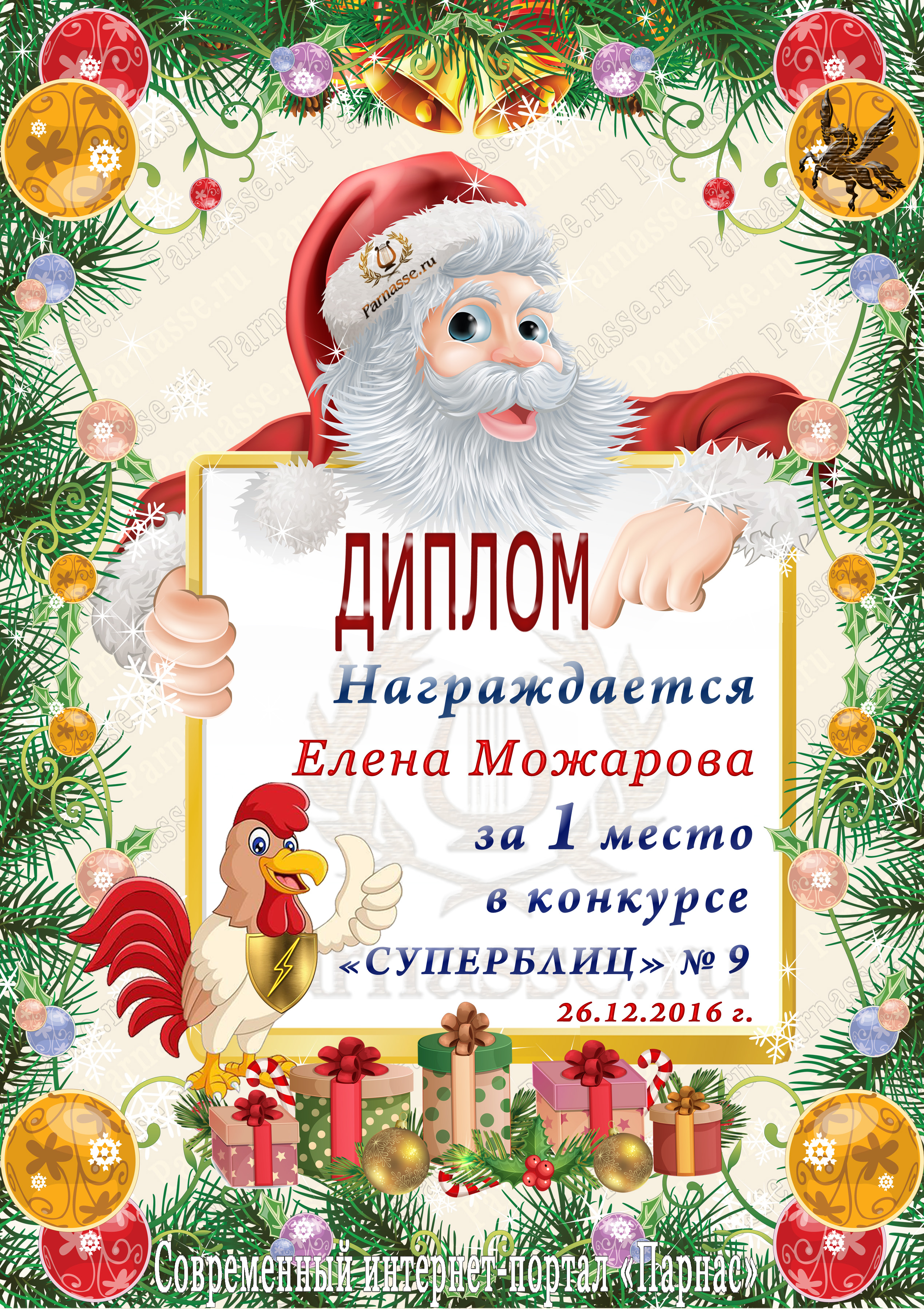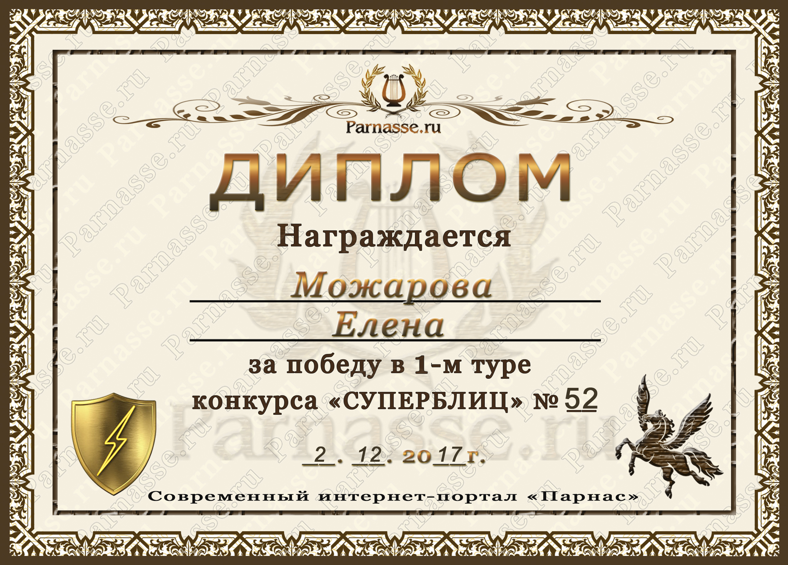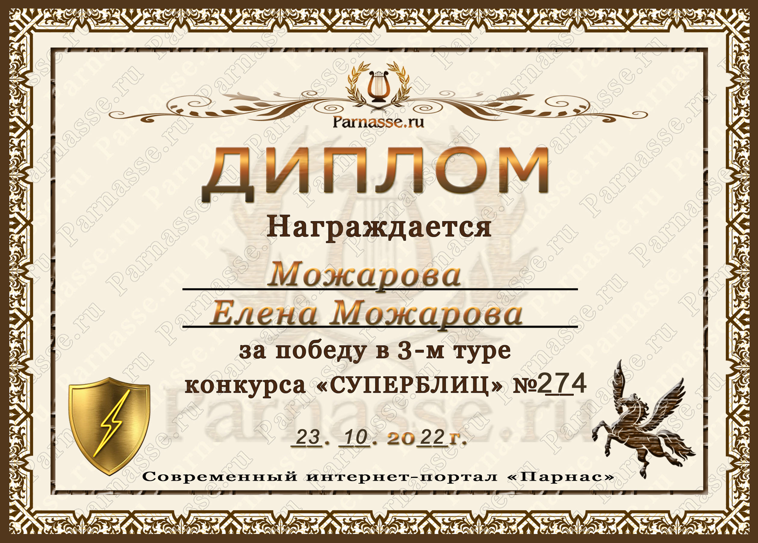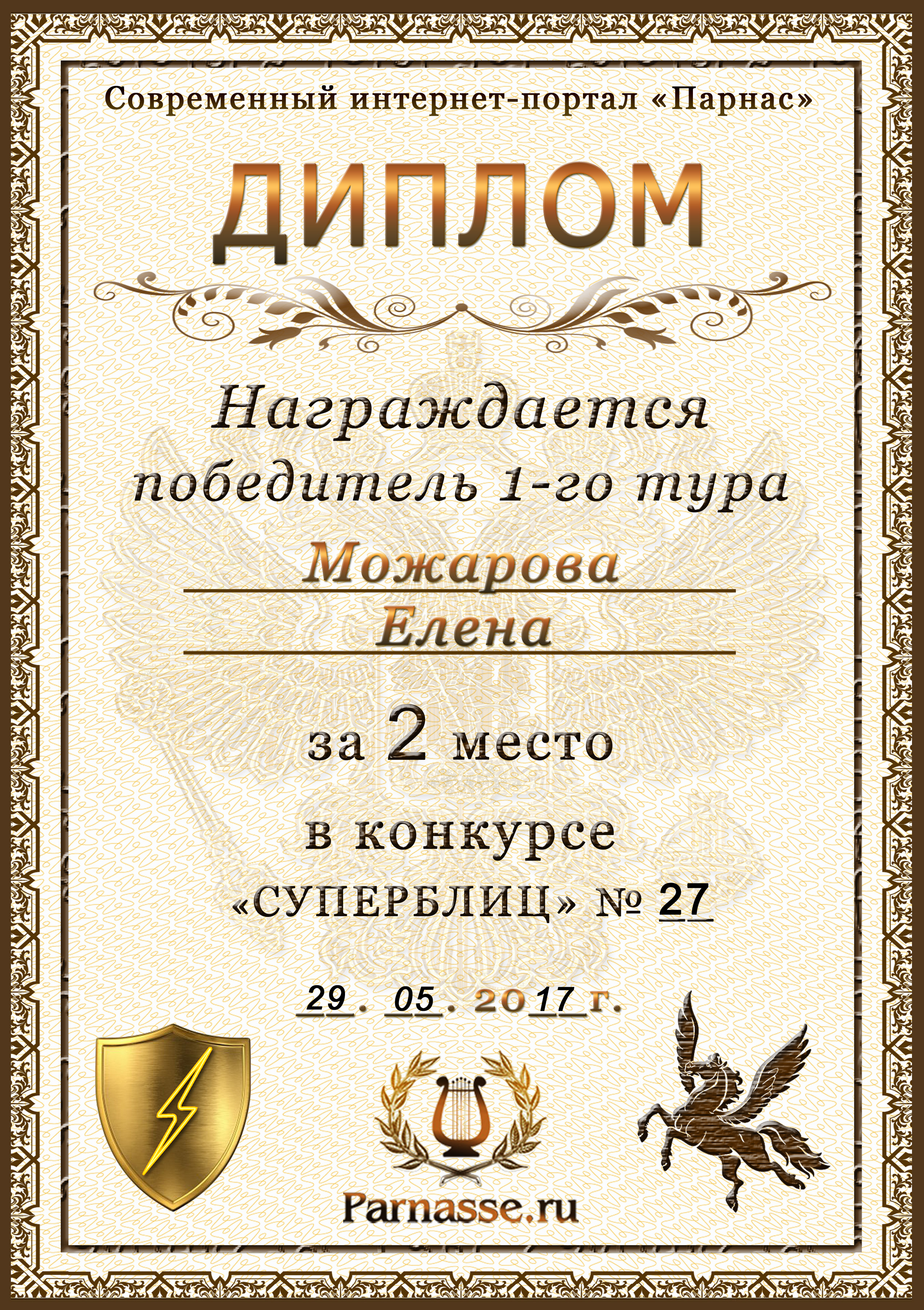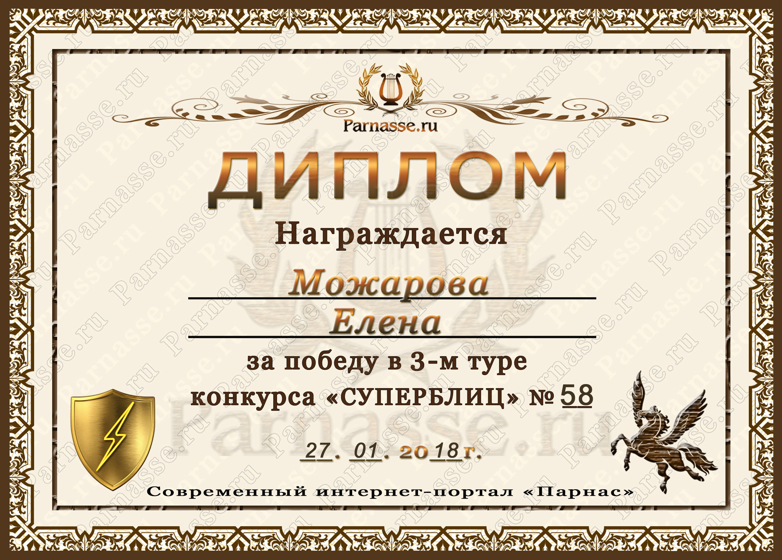 Диплом Победителя за 1 место в праздничном конкурсе "Поздравим Парнас с трёхлетием вместе!"
