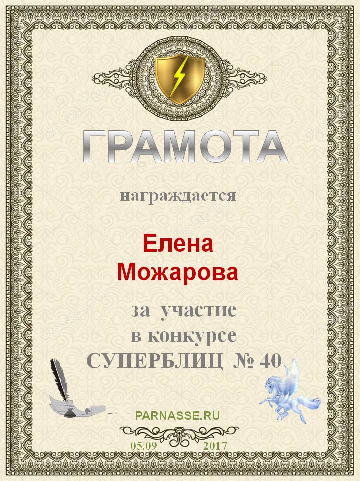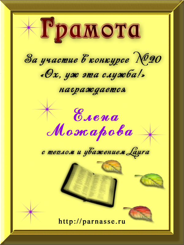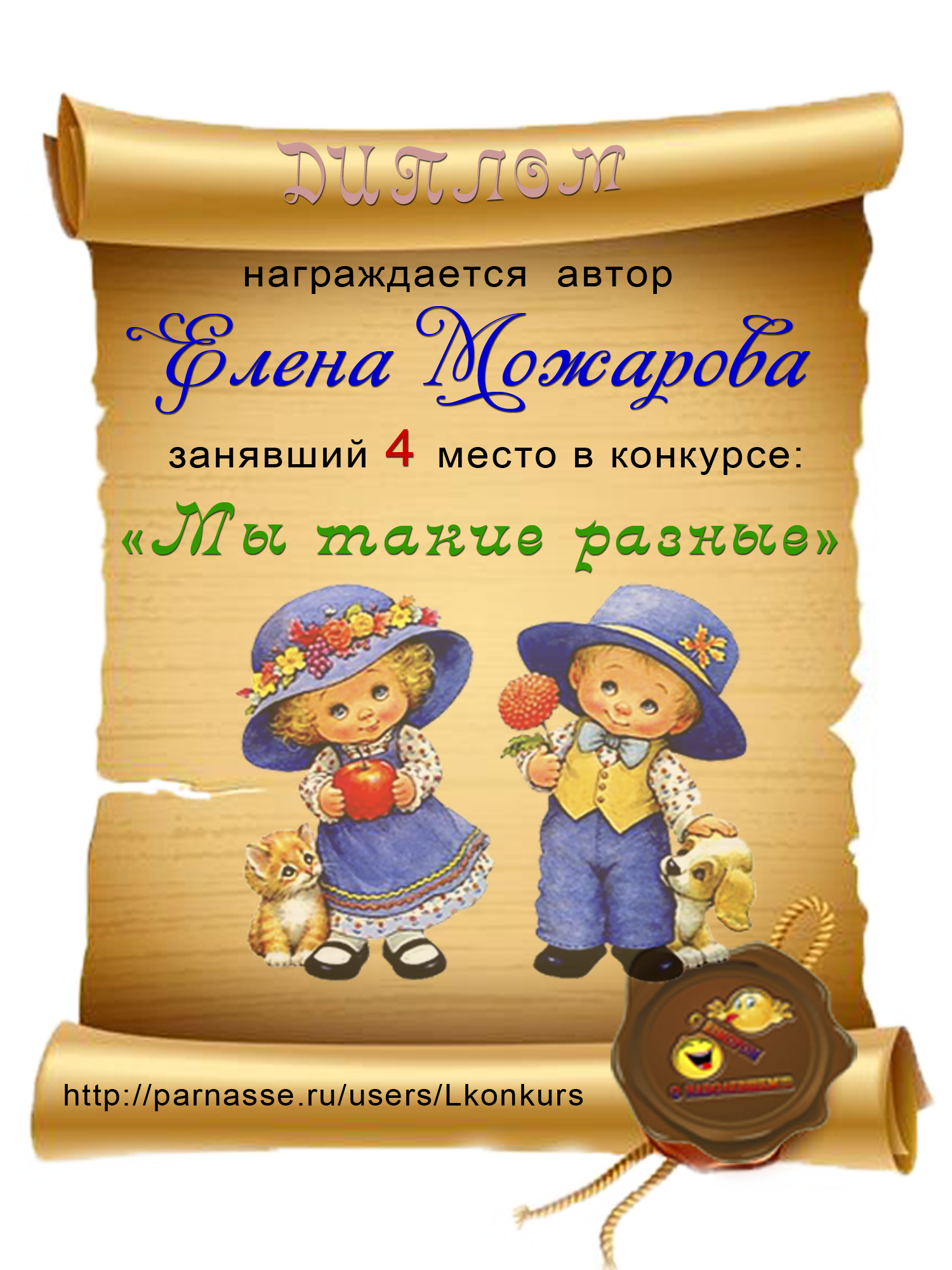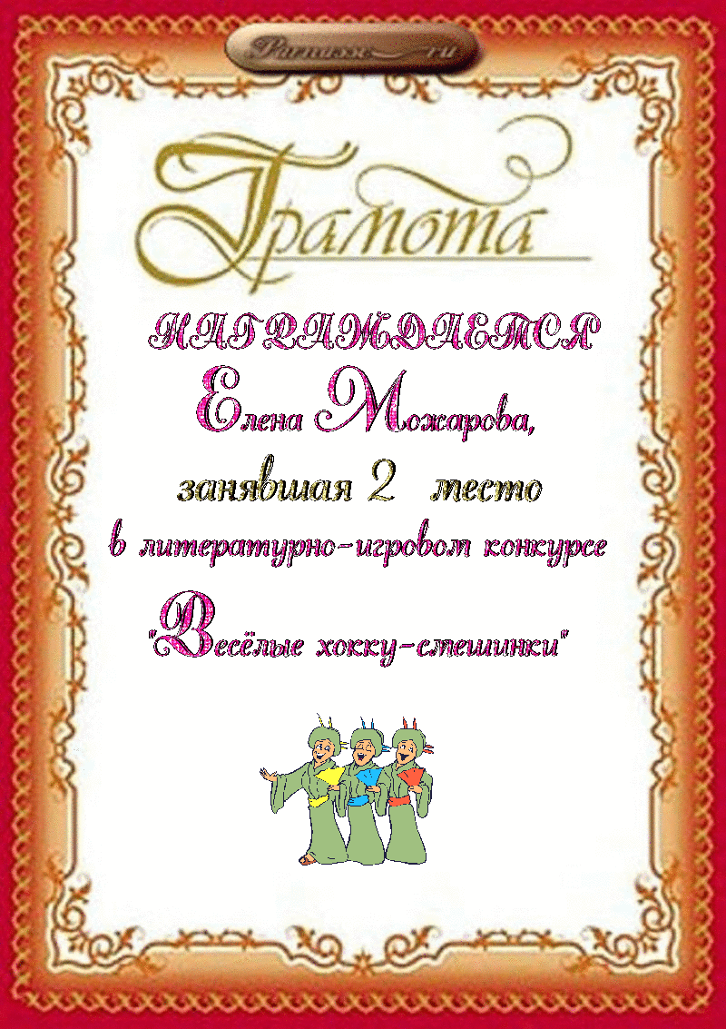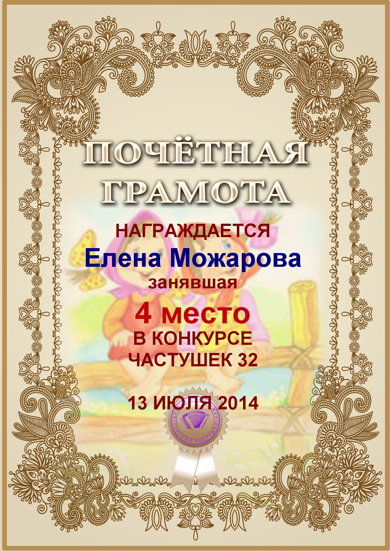 Похвальная грамота за 4 место и активное участие в конкурсе лимериков № 57+ (27.07.2014 г.)