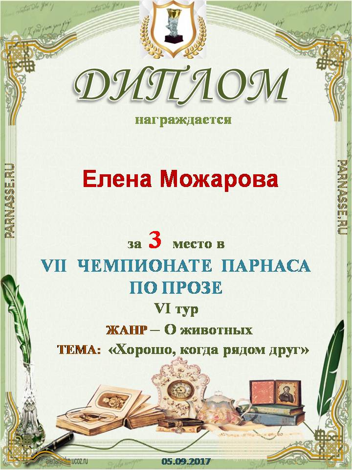Диплом за 3-е место в номинации "Лучшая дуэль" в шестом конкурсе поэтических дуэлей
