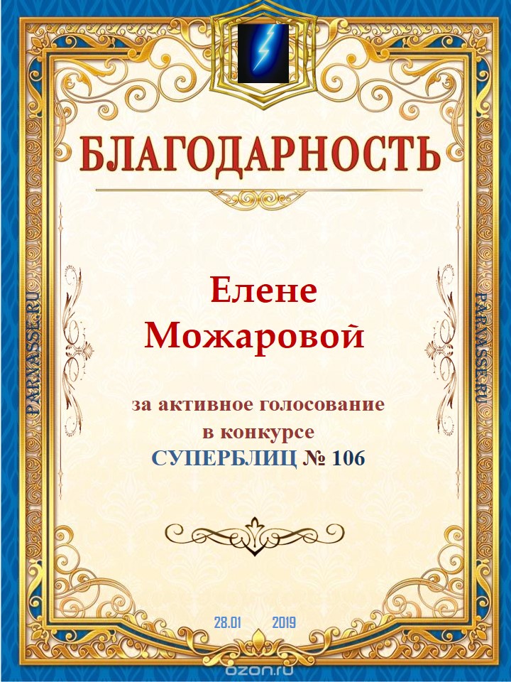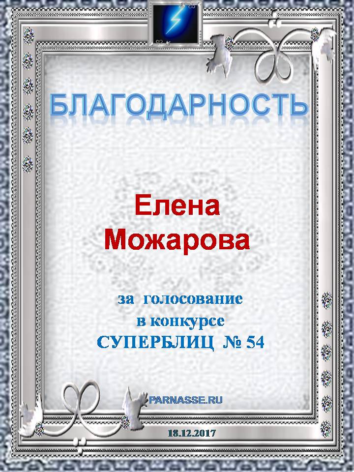 ЕЛЕНА, БЛАГОДАРЮ ЗА УЧАСТИЕ В СЛОЖНОЙ НОМИНАЦИИ КОНКУРСА №10Н