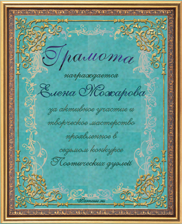 Диплом за 3-е место в номинации "Лучшая дуэль" по итогам общего голосования в седьмом конкурсе поэтических дуэлей