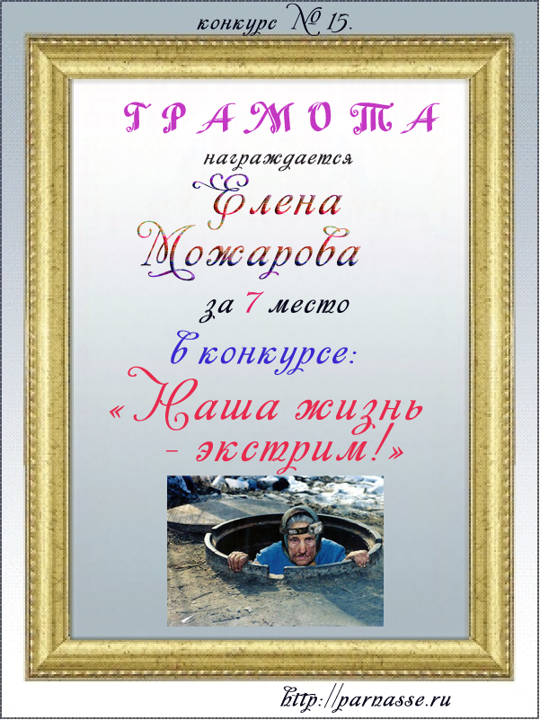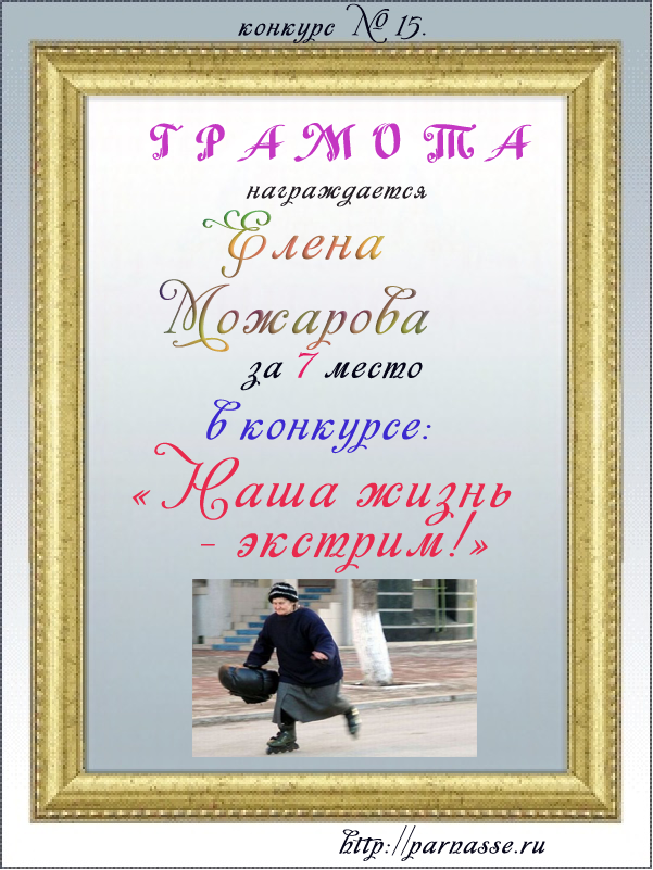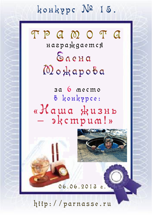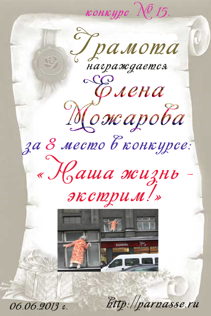 Грамота за 6 место в 15 конкурсе "Наша жизнь - экстрим"