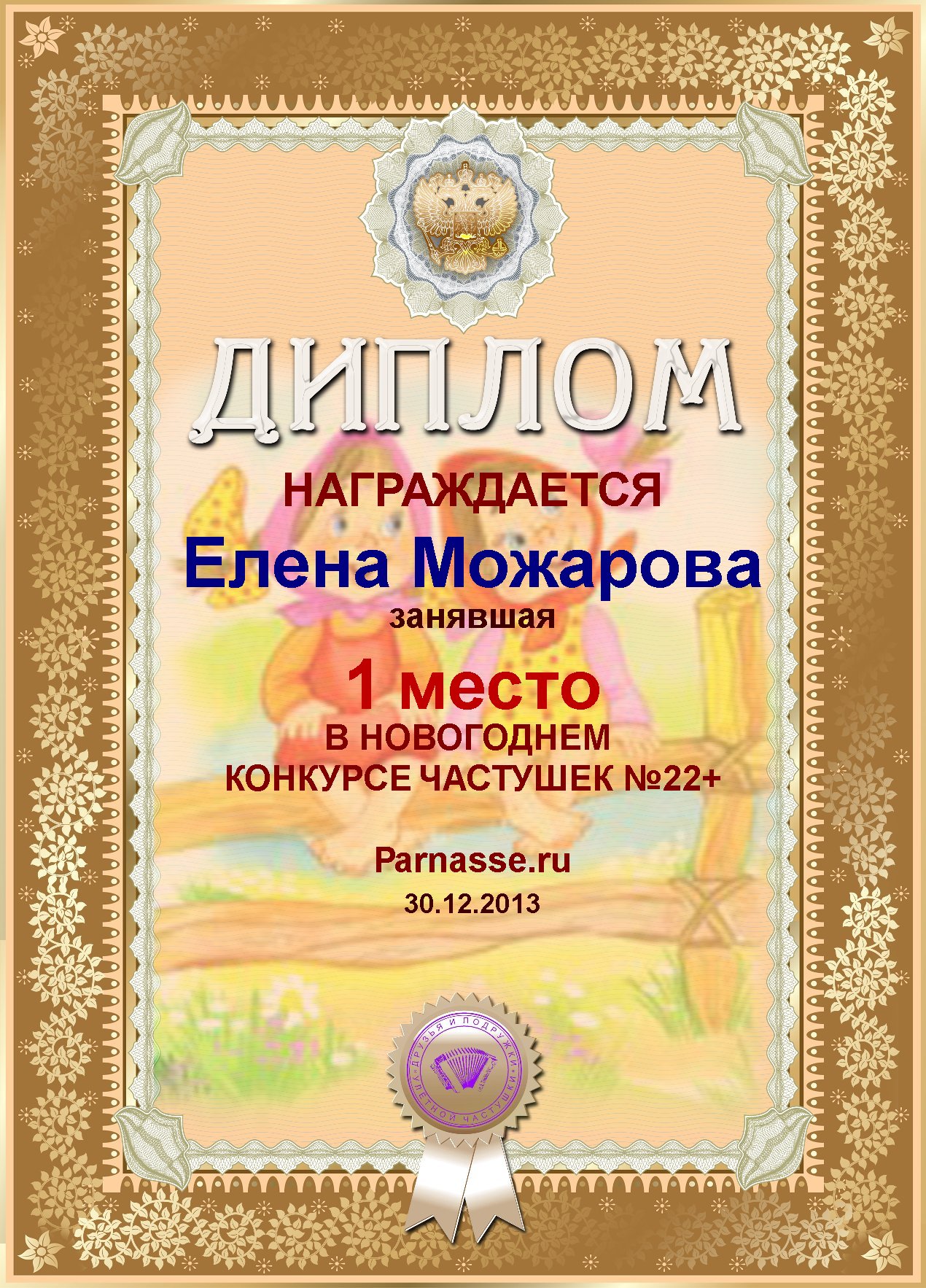 Диплом за победу и 1 место в дополнительной номинации конкурса лимериков № 45+ (18.11.2013 г.)