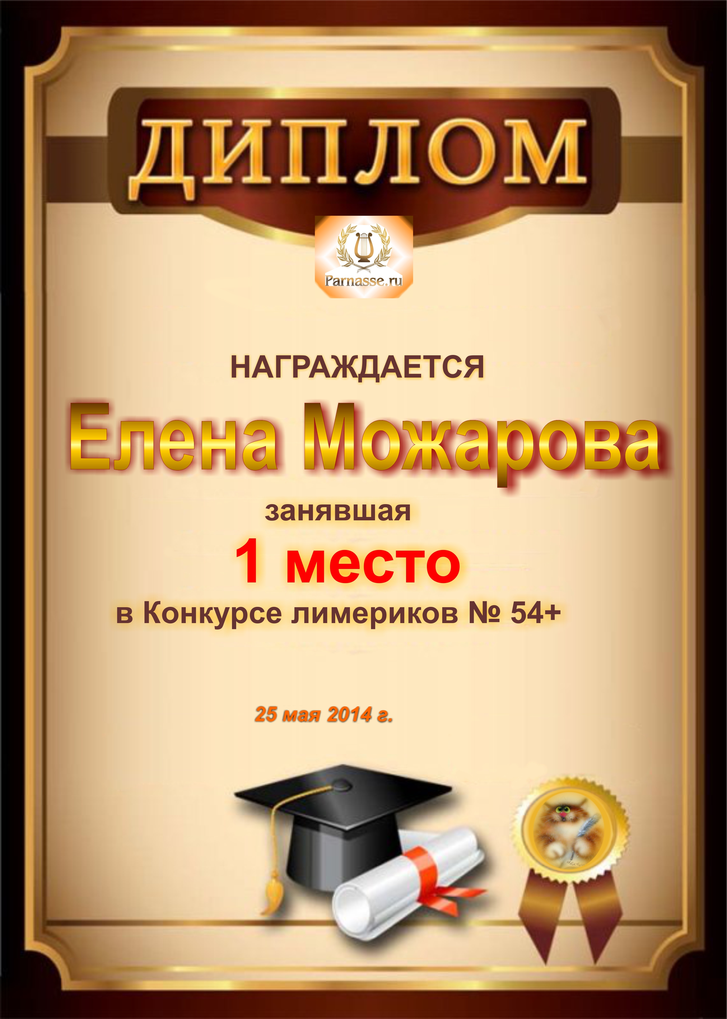 Диплом за победу и 3 место в дополнительной номинации конкурса лимериков № 54+ (25.05.2014г.)