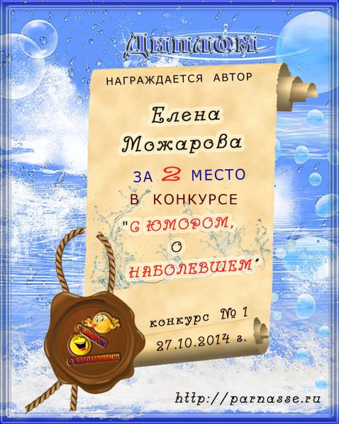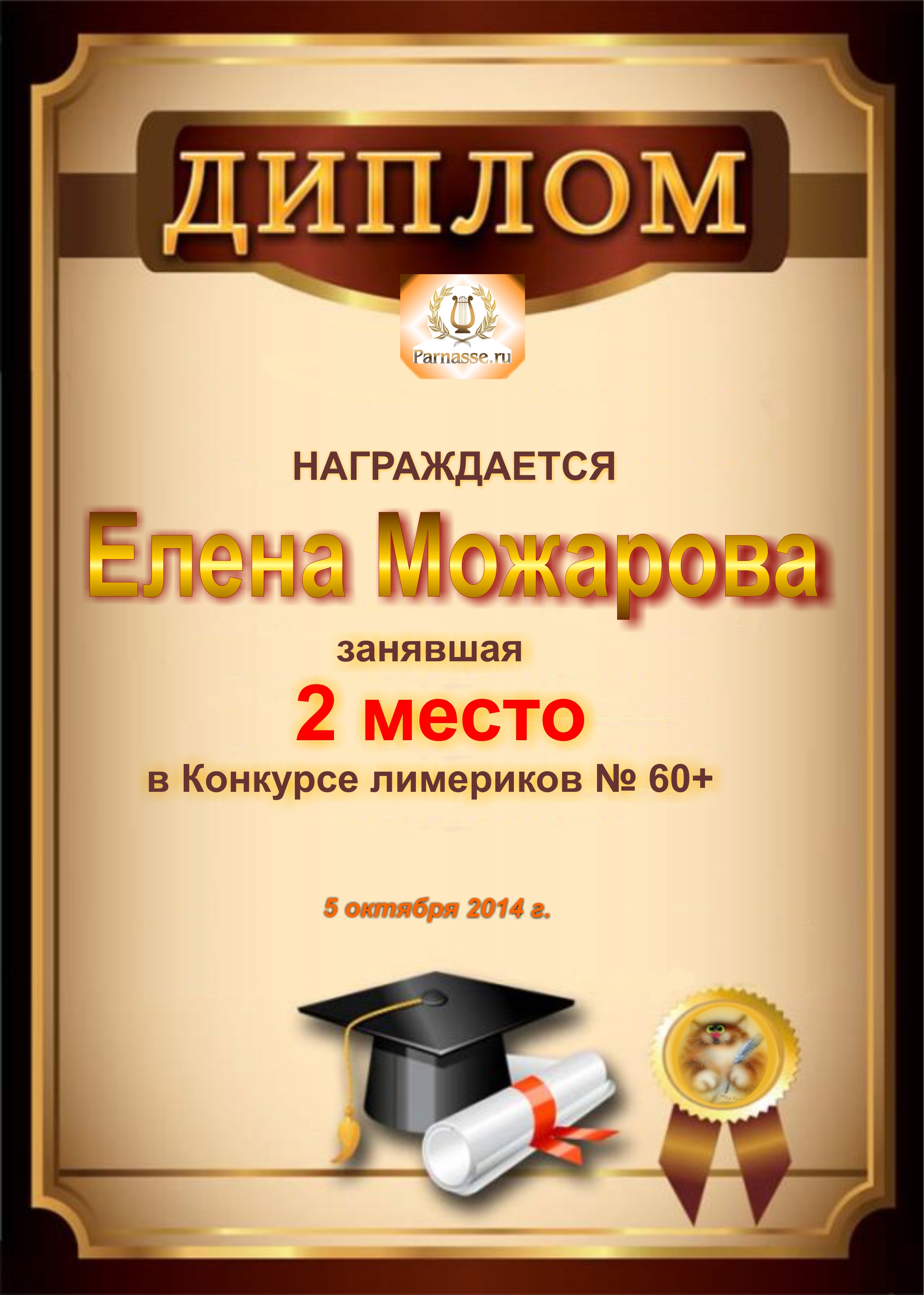 Диплом за победу и 2 место в дополнительной номинации конкурса лимериков № 56+ (6.07.2014г.)