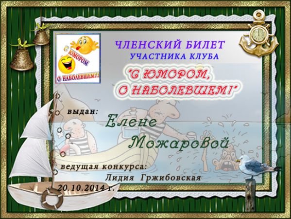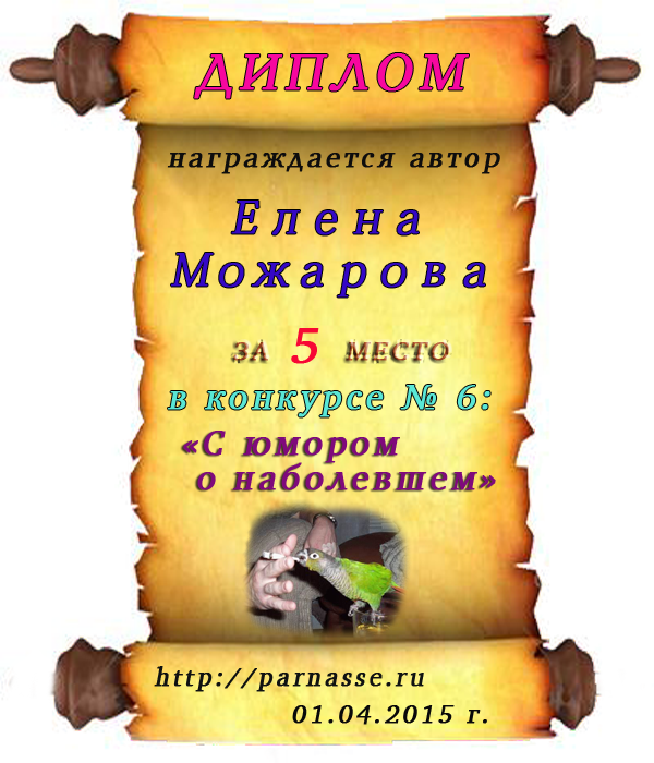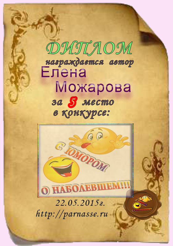 Диплом за 5 место в конкурсе " С юмором. о наболевшем"