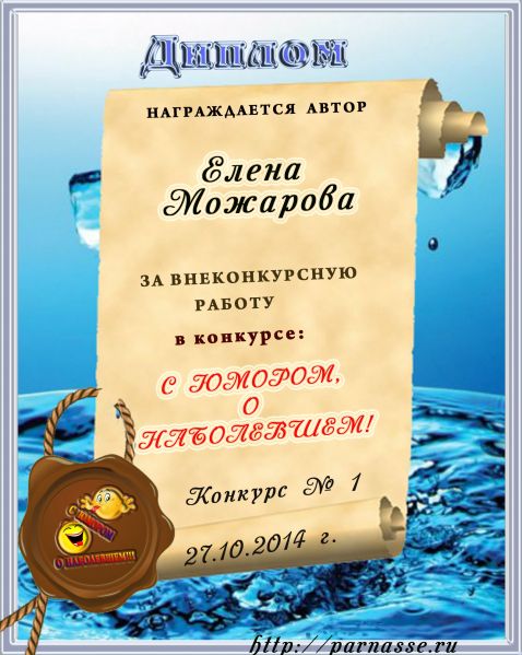 Диплом за победу и 2 место в дополнительной номинации конкурса лимериков № 53+ (4.05.2014 г.)