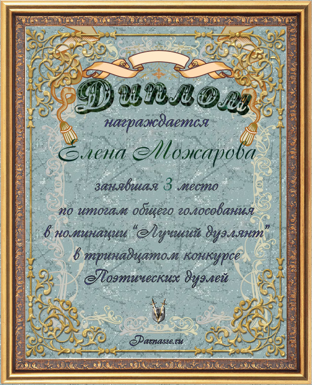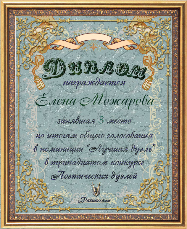 Диплом за 3-е место в номинации "Лучшая дуэль" по итогам общего голосования в 13ом конкурсе поэтических дуэлей (№ 2.1)