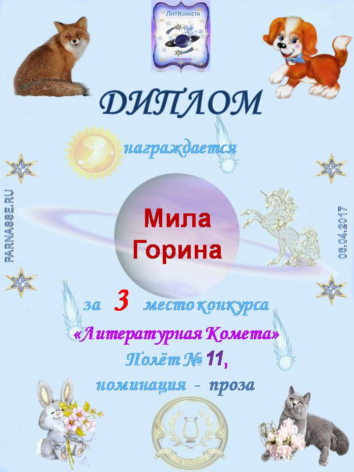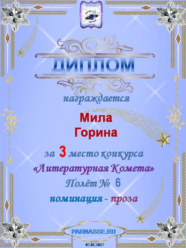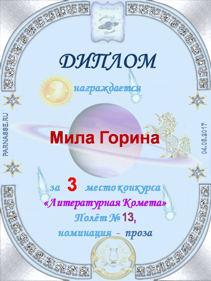 Диплом за 3 место в конкурсе "ЛитКомета"- Полёт № 13 - проза