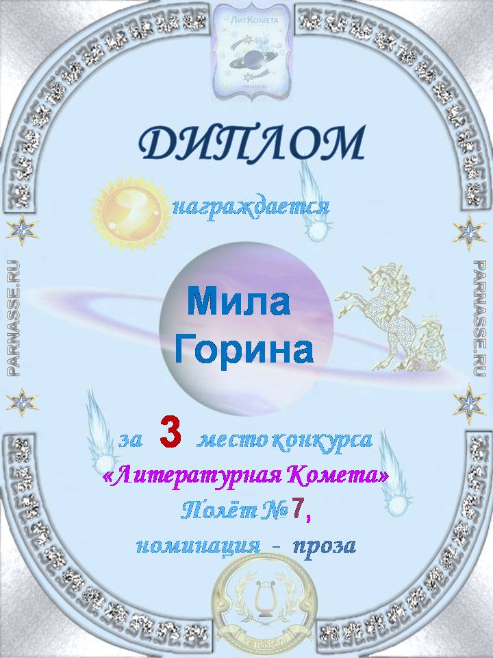 За 3 место конкурса "Литературная Комета" - Полёт № 22 - номинация Проза