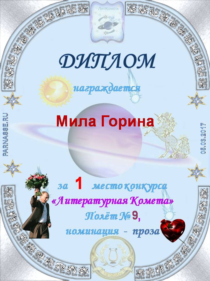 Диплом за 1 место в конкурсе "ЛитКомета"- Полёт № 9 - проза