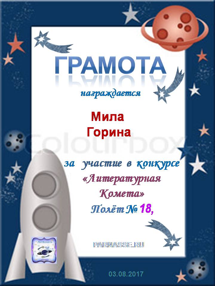 Поздравляю с занятым 3 местом в конкурсе «Литературная Комета – Полёт № 35» - номинация проза!