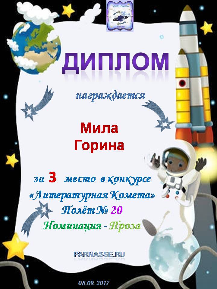 За 3 место конкурса "Литературная Комета" - Полёт № 20 - номинация Проза