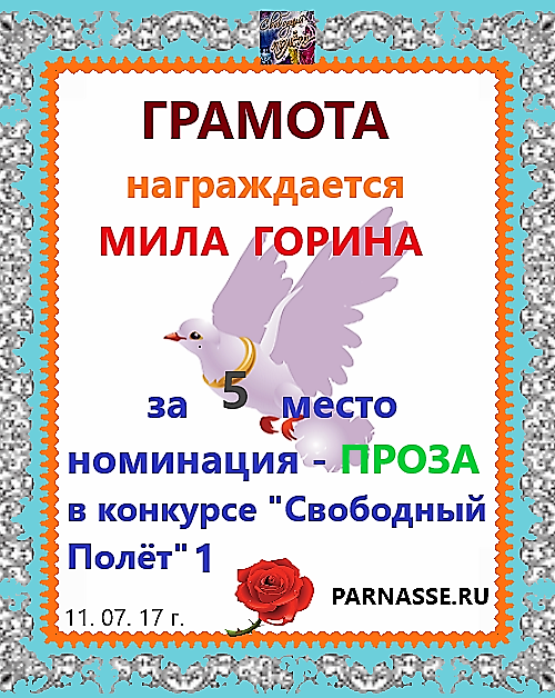 За 2 место - Номинация Проза, ЛитКомета, Полёт № 48