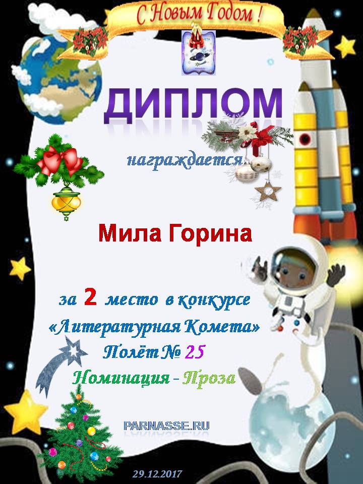 За 2 место конкурса "Литературная Комета" - Полёт № 25 - номинация Проза