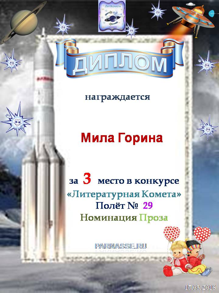 За 3 место конкурса "Литературная Комета" - Полёт № 29 - номинация Проза