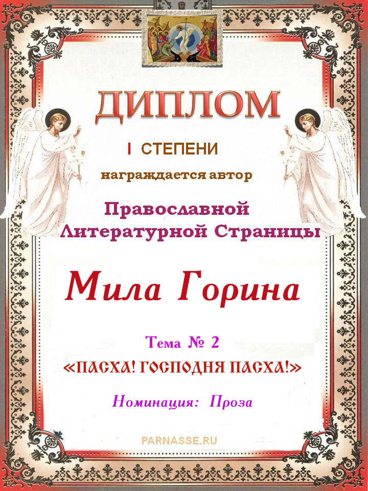 1-е место. Тема № 2 "Пасха! Господня Пасха!" Номинация Проза.