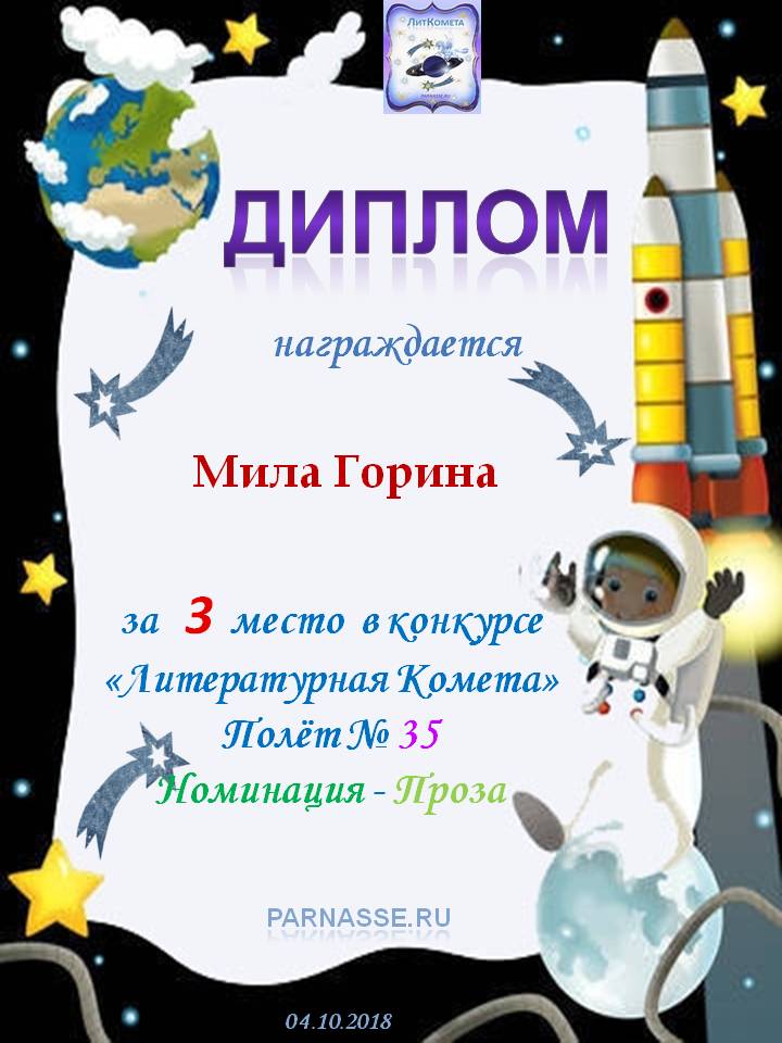 За 3 место в конкурсе "Литературная Комета - Полёт № 35" - проза