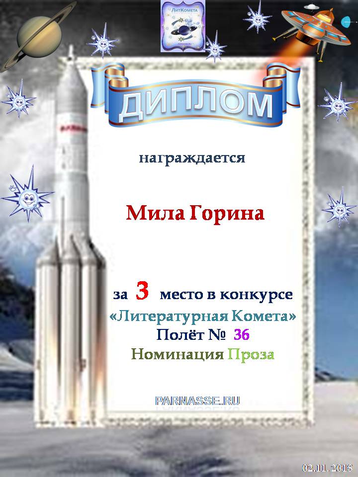 За 3 место в конкурсе "Литературная Комета - Полёт № 36" - проза