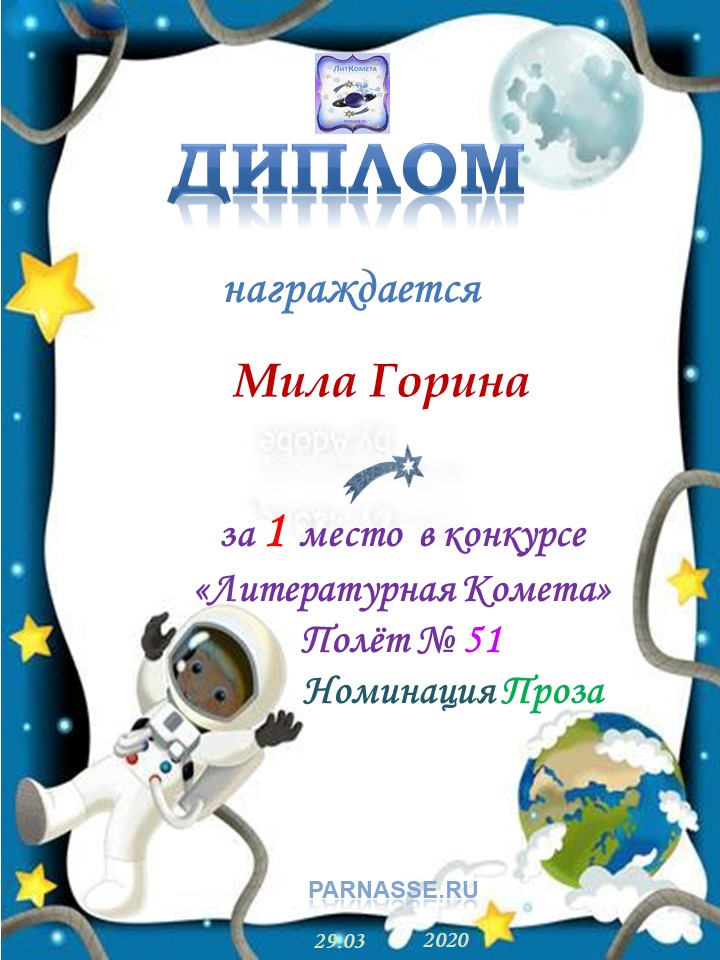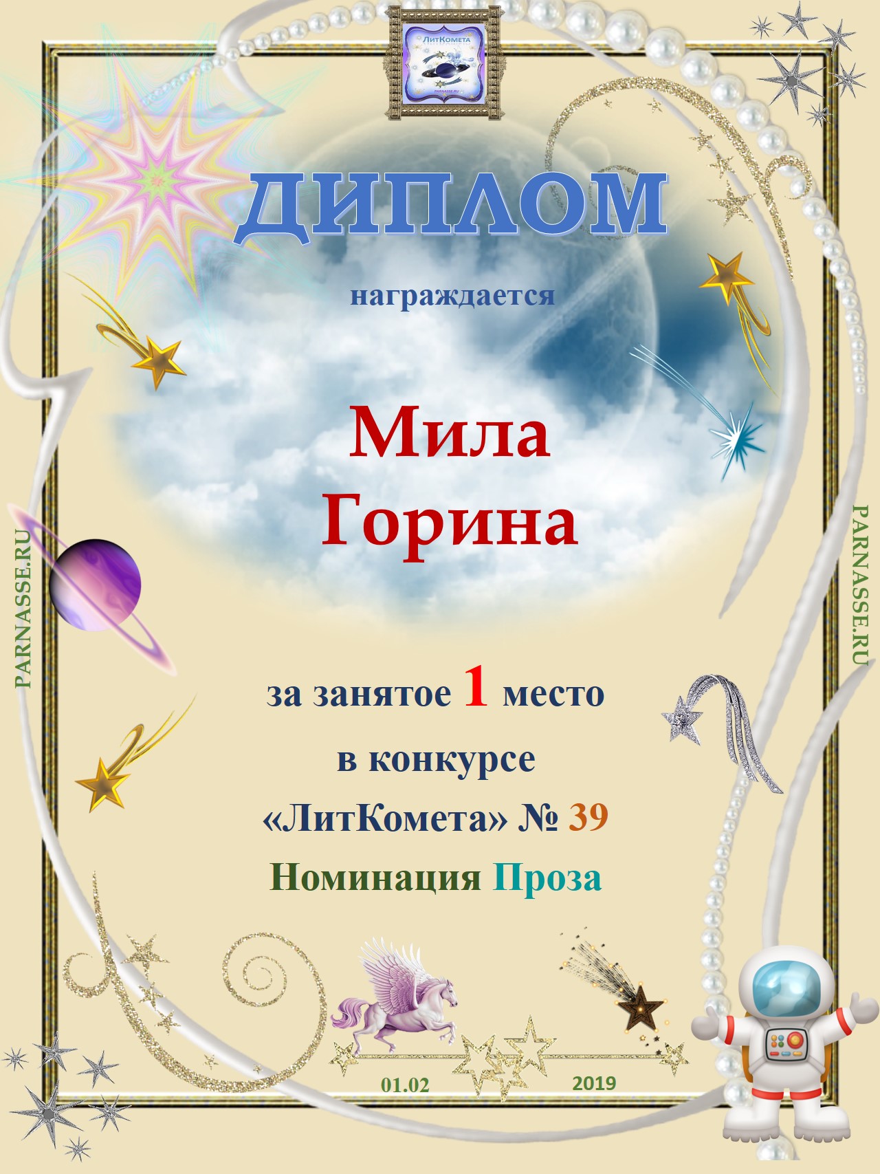 За 1 место - Номинация Проза, ЛитКомета, Полёт № 39