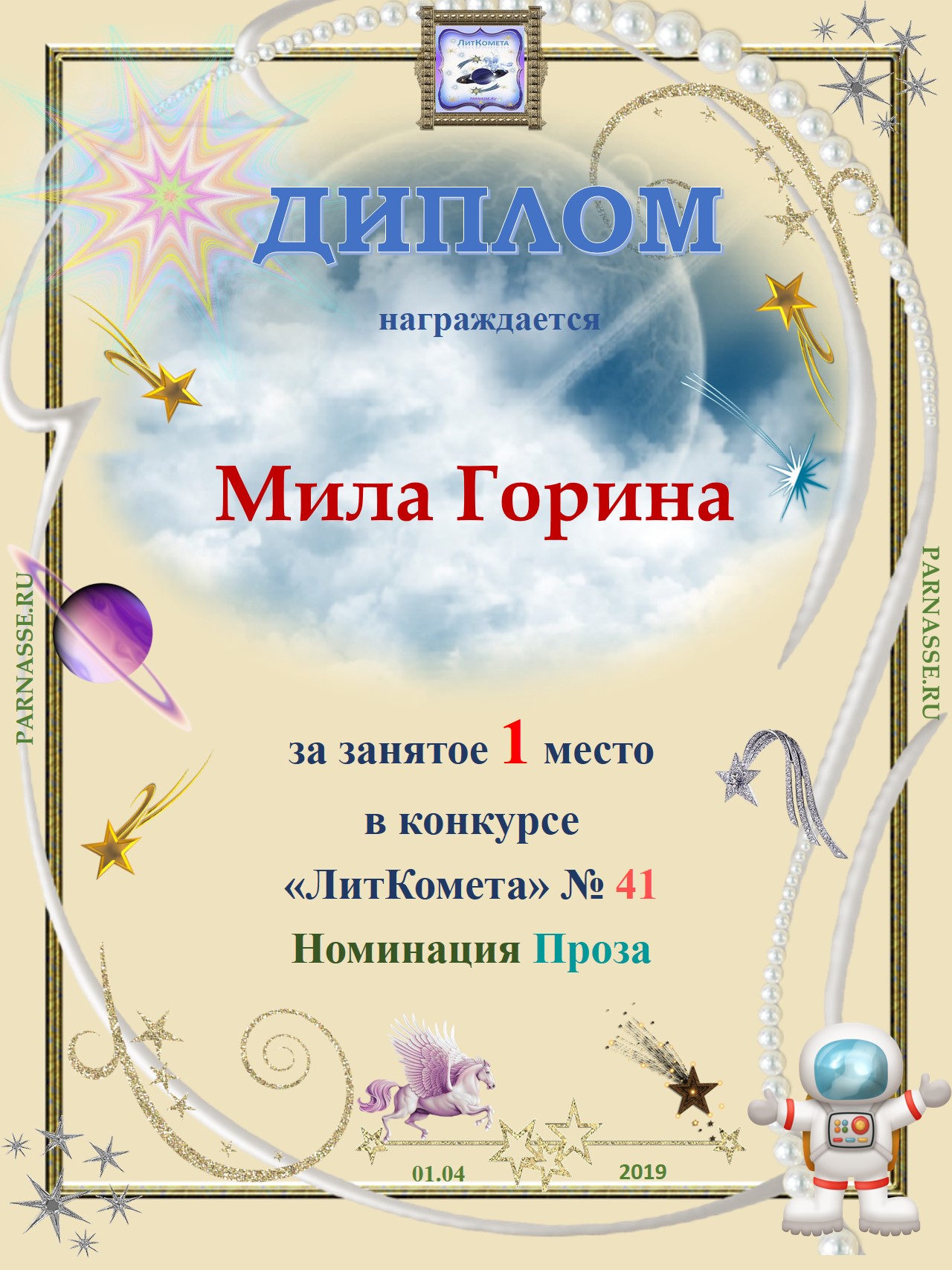 За 1 место - Номинация Проза, ЛитКомета, Полёт № 41
